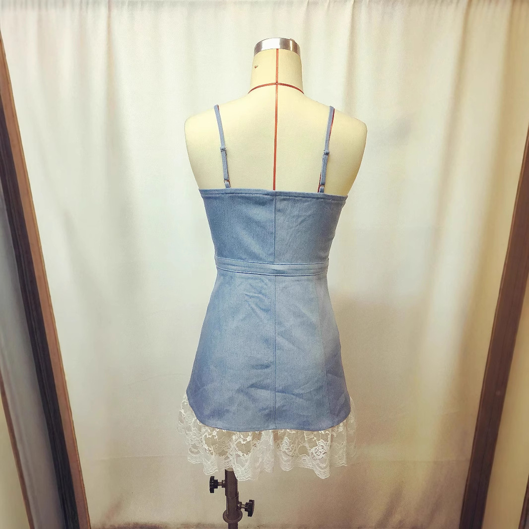 クロスボーダー新スタイル不規則なウエスタンカウボーイスタイルレースストラップウエスト痩身ストレッチデニムドレスB