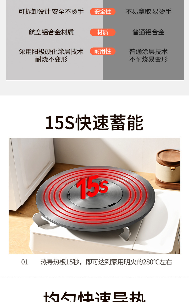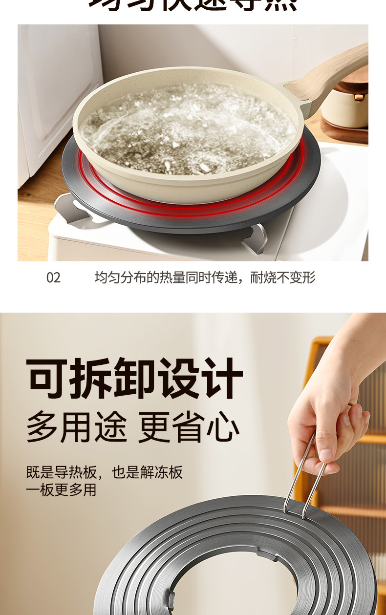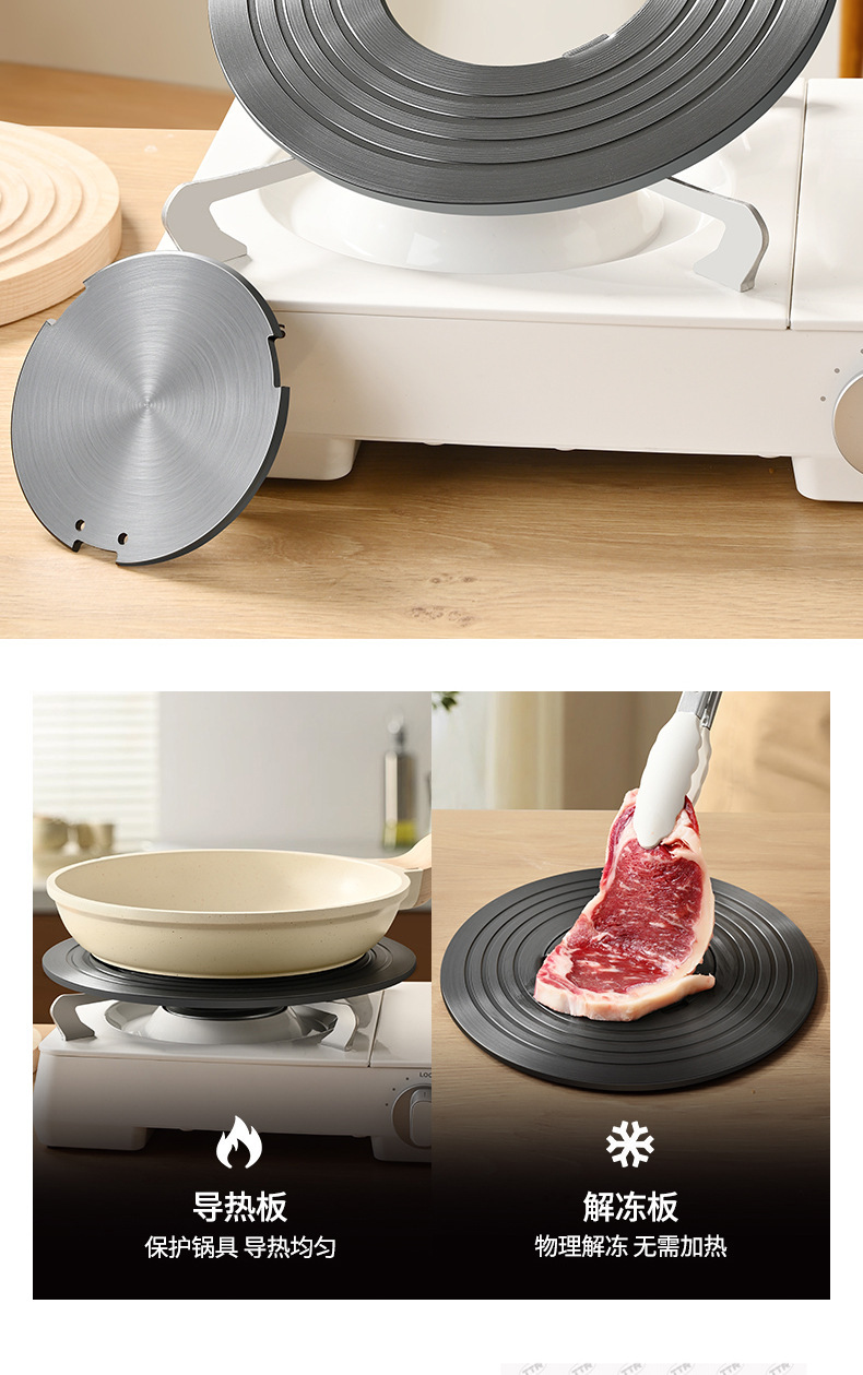 熱伝導プレートの取り外し、取り外し可能な解凍プレート、ガスコンロ、ガスストーブ、焦げ付き防止、鍋底断熱、直火熱伝導プレート