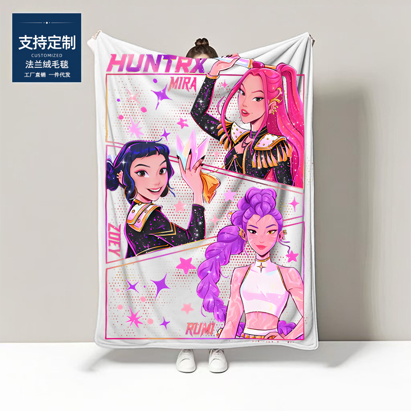2025新番Kpop猎魔女团午休跨境办公室午休毛毯被子法兰绒沙发盖毯