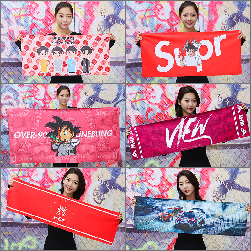 写真からサンプル印刷、ロゴマラソンスターサポートハンドサイン、フィットネスヒップホップスポーツタオル、バスタオルを作成します。