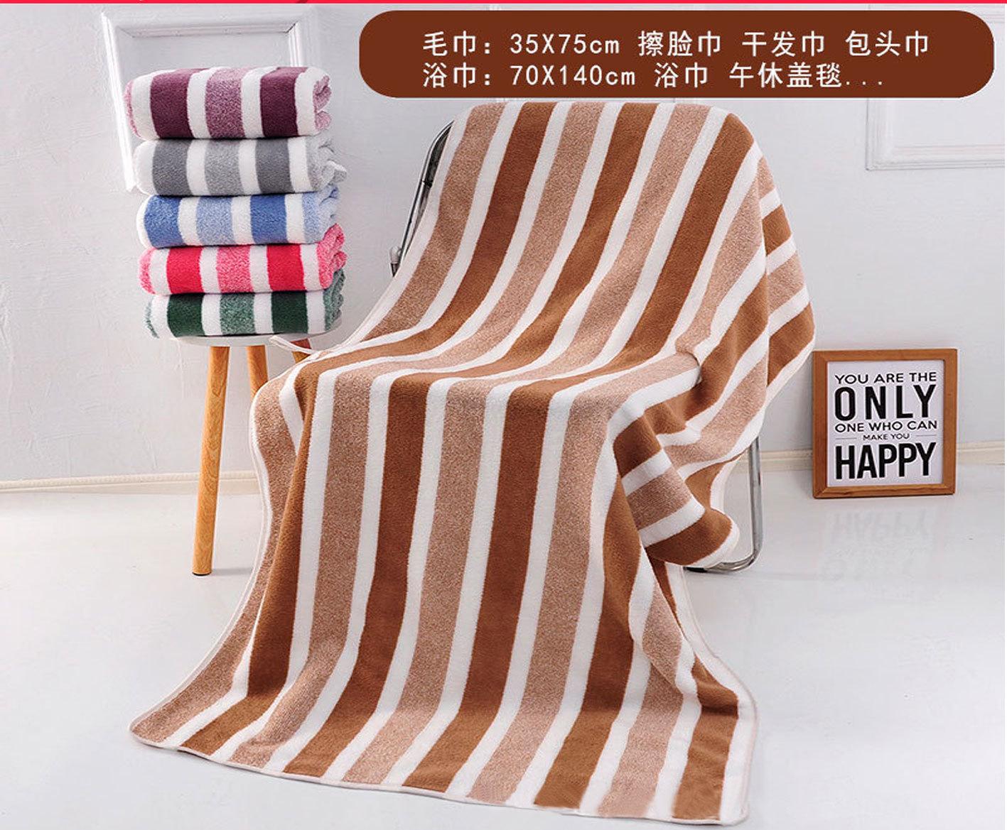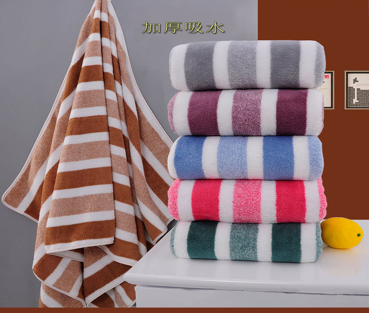 サンゴのタオルの両面は大人のバスタオルの吸水速乾を厚くして、柔らかくて毛が落ちないタオルのストライプのバスタオルのセットです。