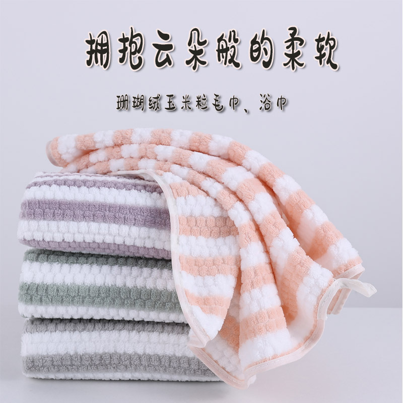 国境を越えた新作コーラルベルベットタオル、バスタオル、コーン粒ジャカード縁取り、シンプルな洗顔・入浴用、柔らかく肌に優しく吸水性が高い