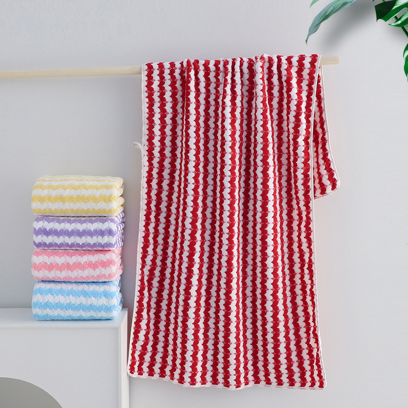 新しいサンゴの綿毛の細いストライプのタオルは卸売りして柔らかくて吸水して毛の洗顔タオルを落とさないで厚く顔を拭いてタオルを拭きます。