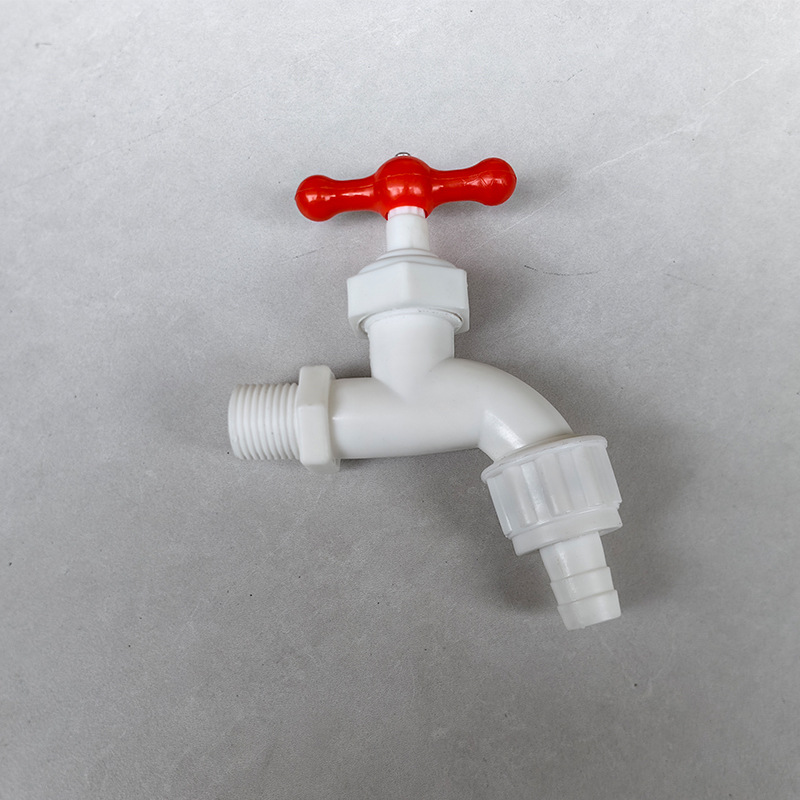 白い南米のプラスチックの蛇口の屋外の花園の蛇口の対外貿易のよく売れているプラスチックはゆっくりと口の赤い柄の水の口を開けます。