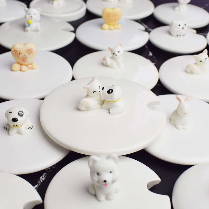 白色盖子陶瓷杯盖可爱卡通防尘马克杯配盖万能通用配件圆型茶杯盖