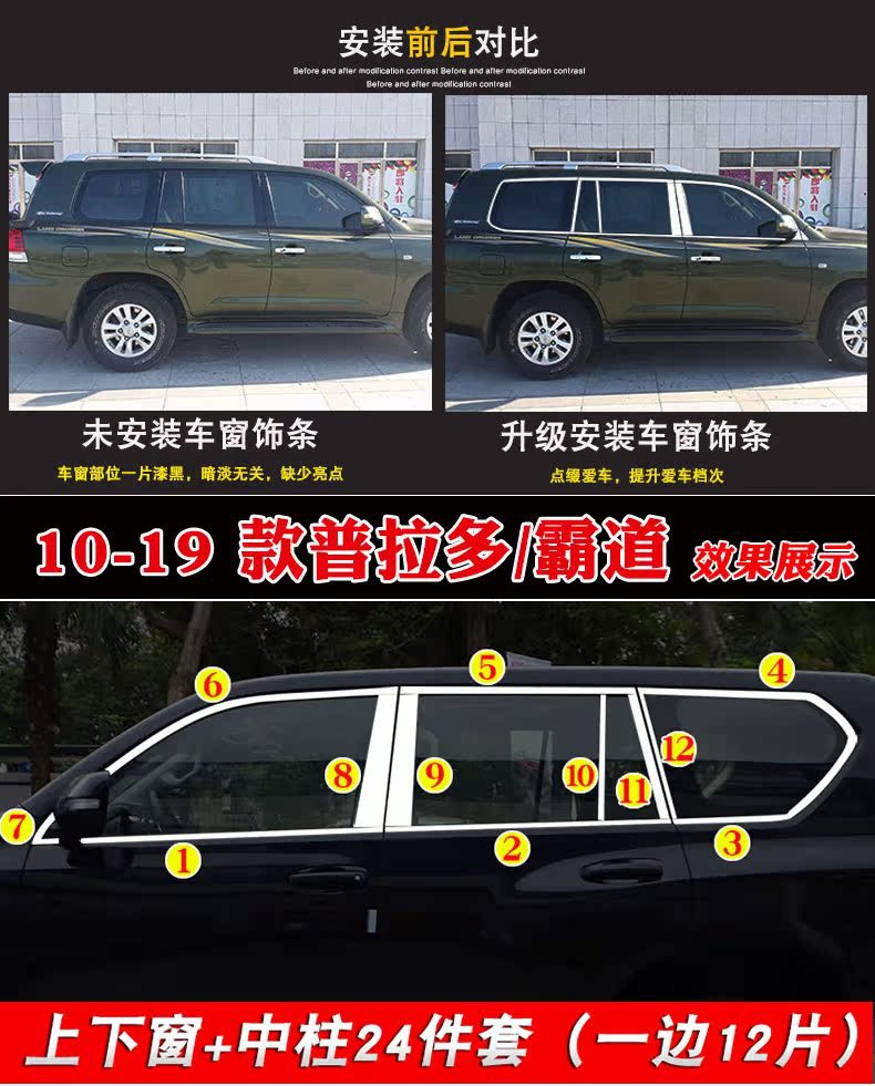 04-19 トヨタ プラド 新しい横暴なウィンドウトリム ランドクルーザー ボディブライトストリップ装飾改造スペシャル