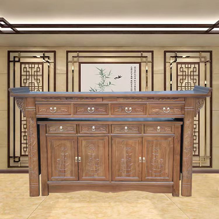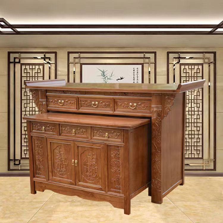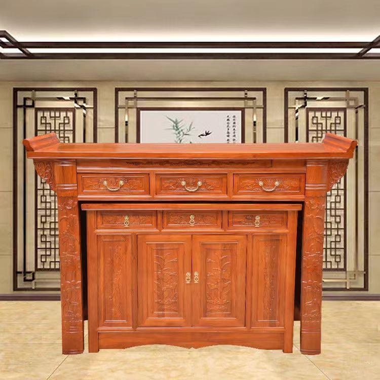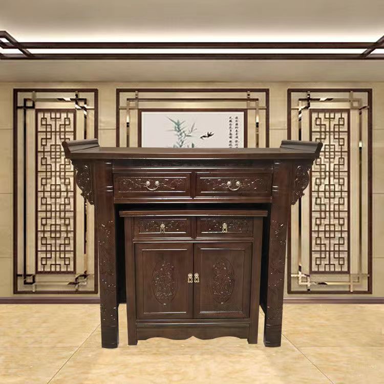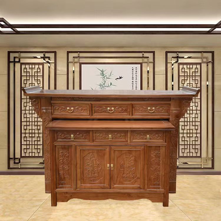 Z % 供卓実木香案三階神案台キャビネット付き香炉敬神家庭用財神供神台玄関口