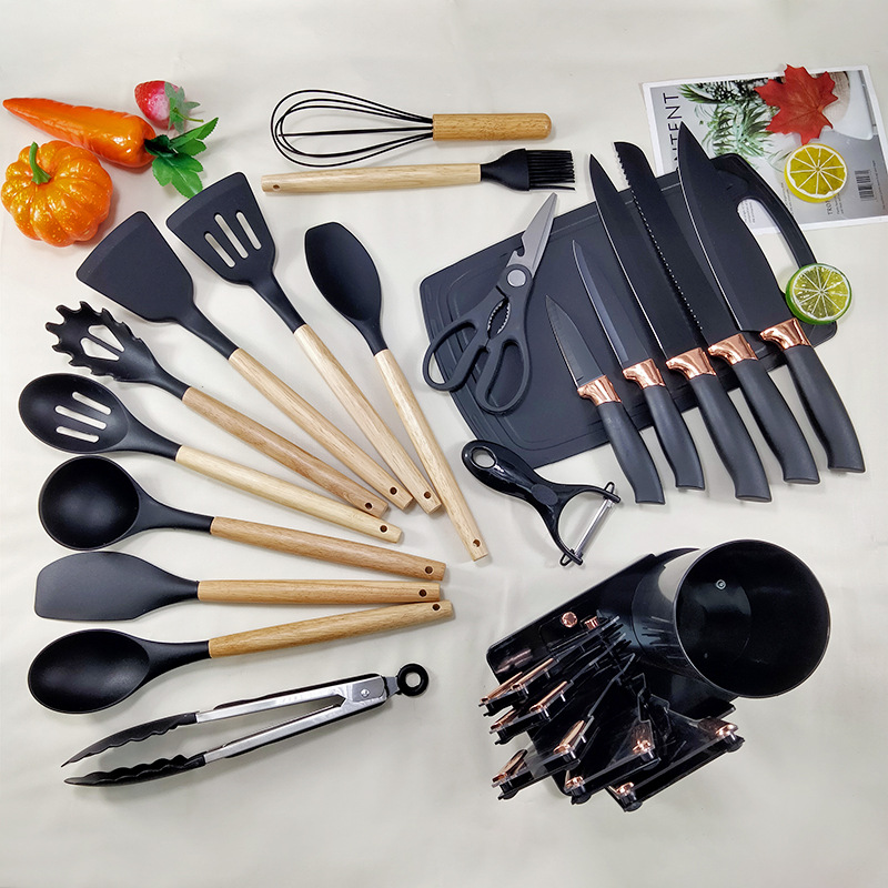 現物シリカゲル調理器具セットナイフ20点セット19点セット調理鍋シャベルスプーンカラー非粘着ナイフアマゾン人気