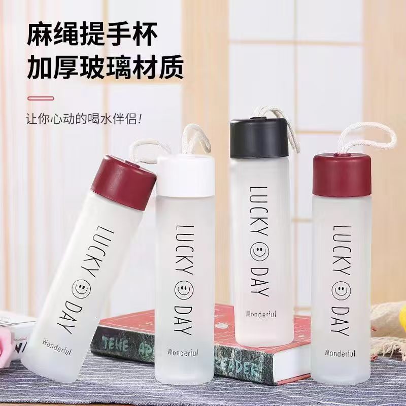 网红麻绳玻璃杯磨砂水杯批发礼品杯可印制便携创意玻璃杯