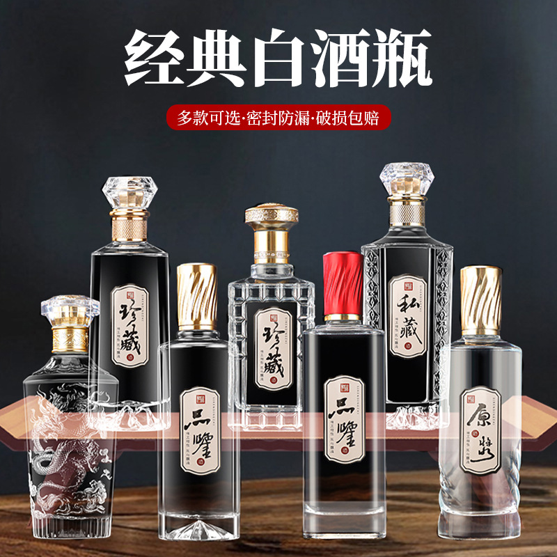 洋酒瓶シール500mlウイスキー包装容器1斤入り空瓶ブランデー酒器透明白酒瓶