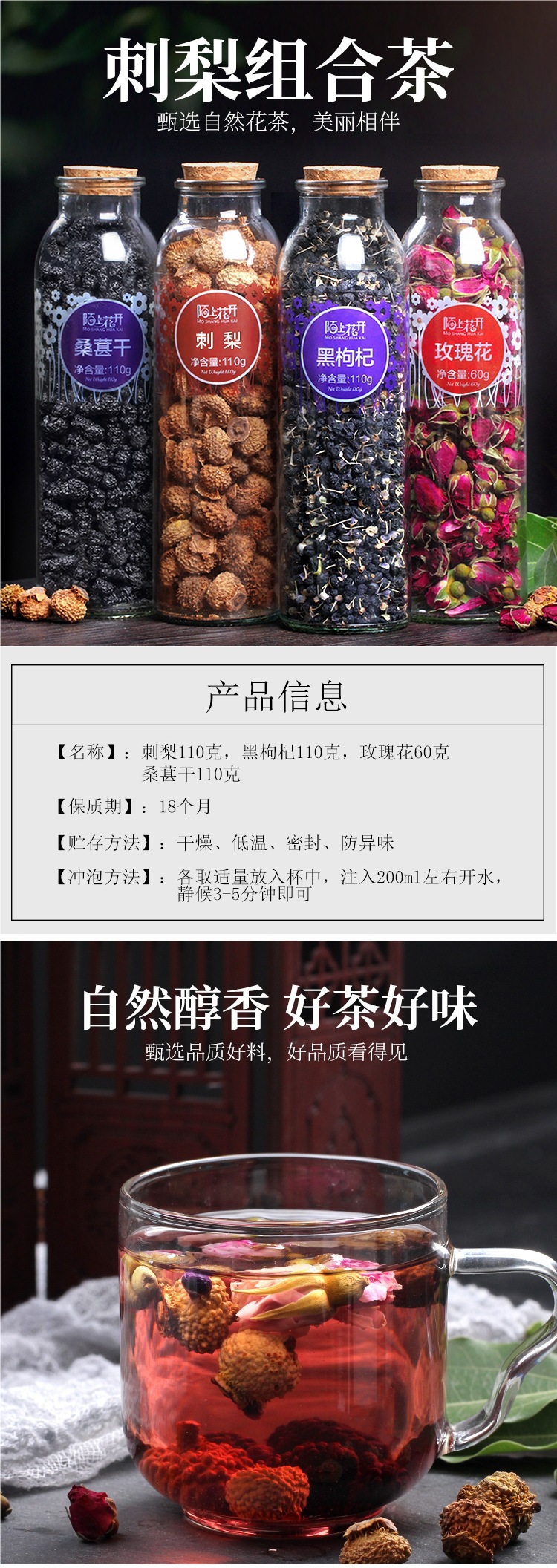 ウチワサボテン、黒クコ、桑の実、乾燥バラの花茶の組み合わせ、高価な水出し茶、州産の新鮮な果物、乾燥ウチワサボテンのティーバッグの特産品