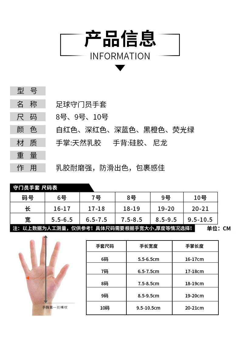 足球守门员手套透气防滑乳胶手套护指青少年比赛训练专用门将批发