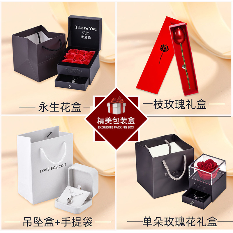 越境クリスマスプリザーブドフラワージュエリーボックス、ジュエリーネックレスギフトボックス、収納ボックス、七夕高級ジュエリーギフトボックス