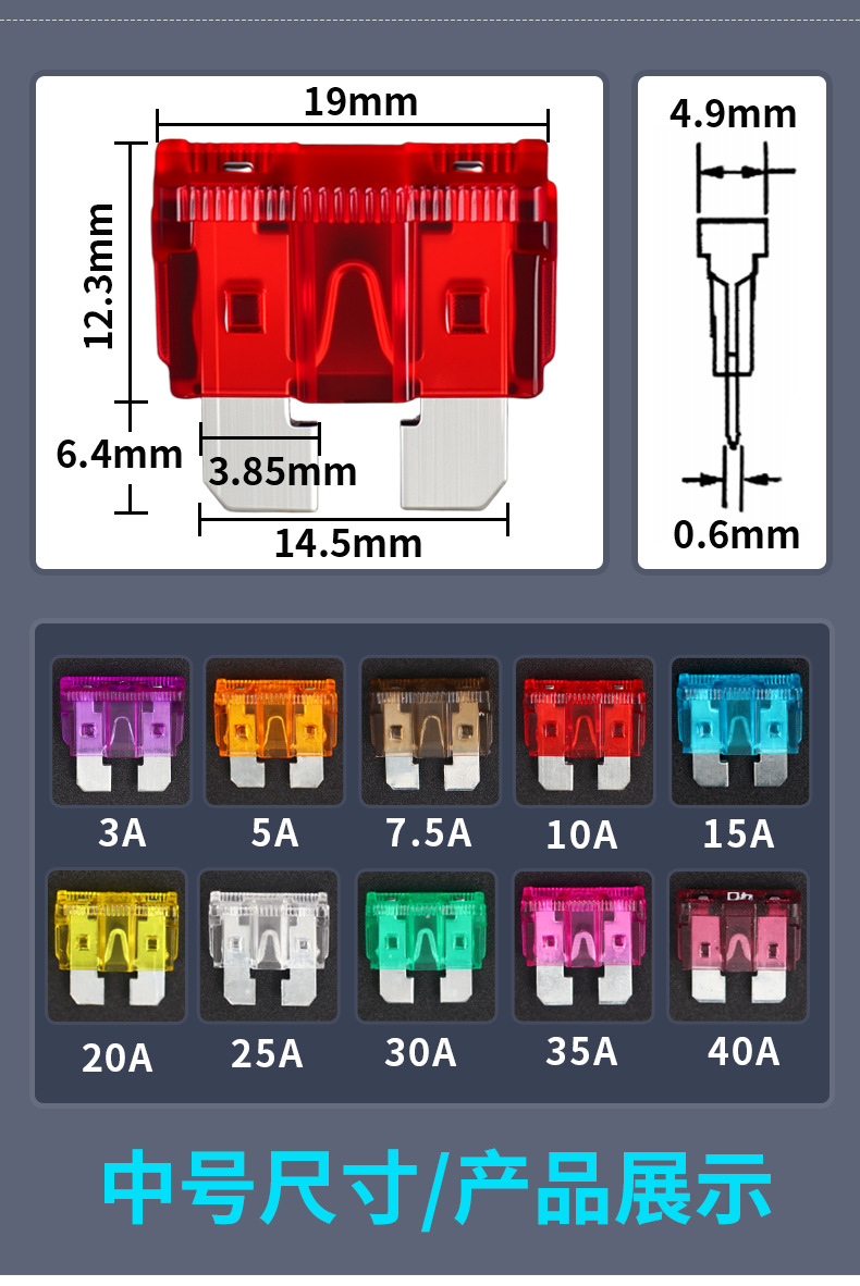 製品仕様 ミニ3A~40Aセット(80本),小3A~40Aセット(80本),中型3A~40Aセット(100本)