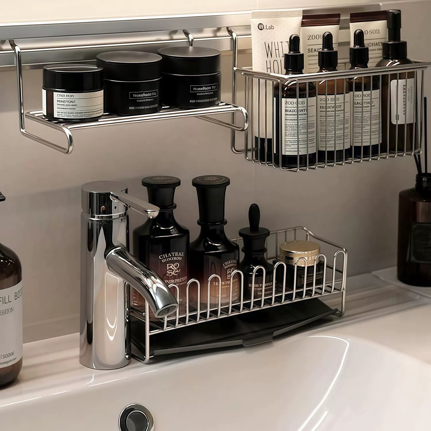 304 ステンレス鋼のバスルームシンク収納ラックスキンケア製品歯ブラシバスアメニティ収納バスケットオーガナイザーラックバスケット