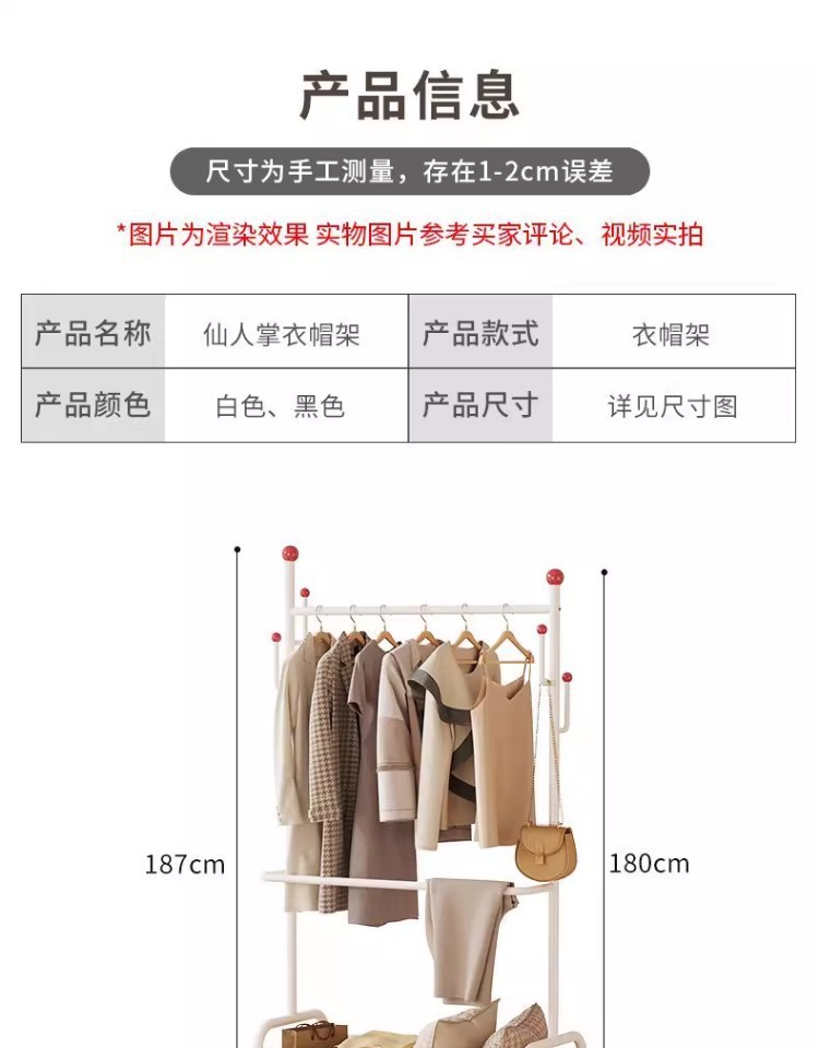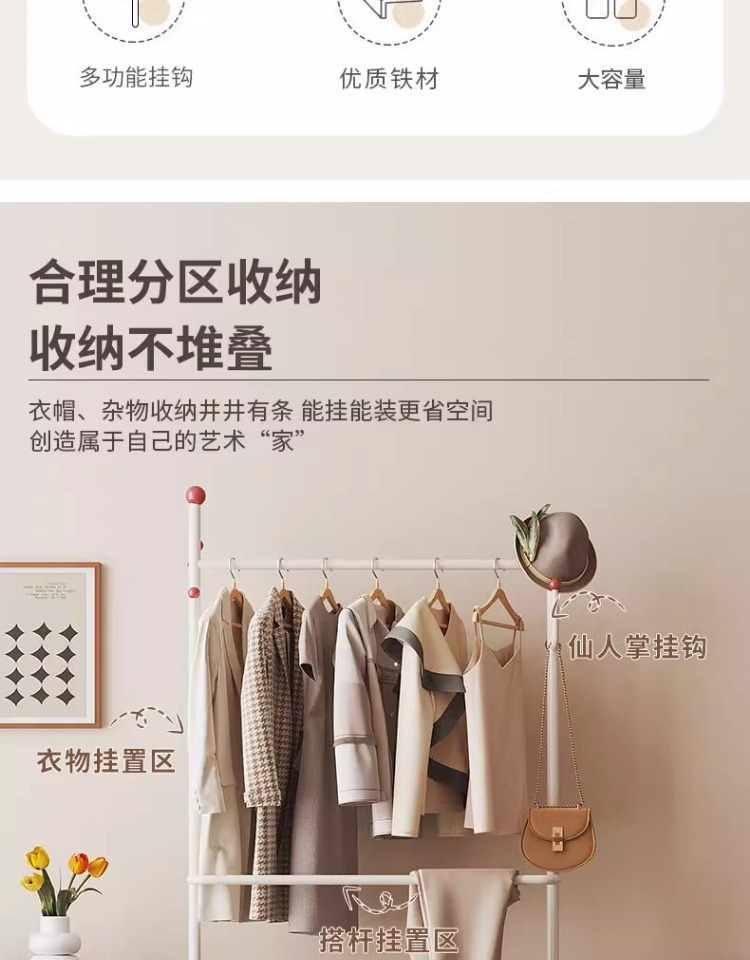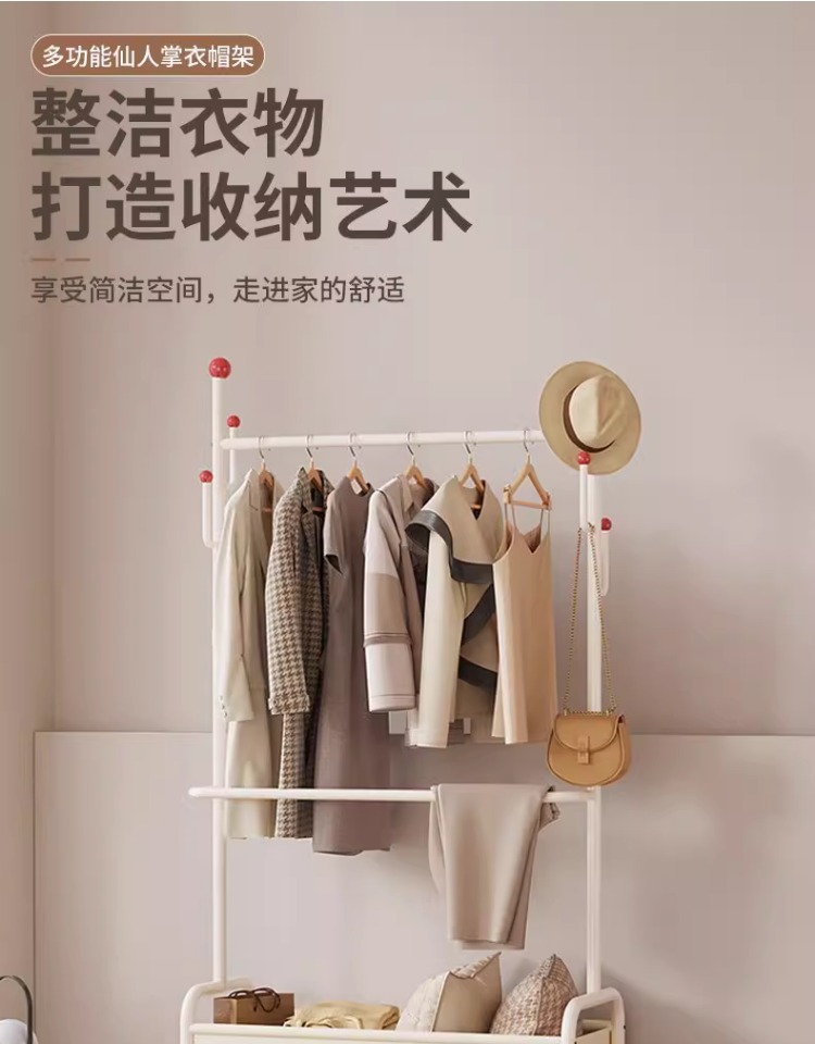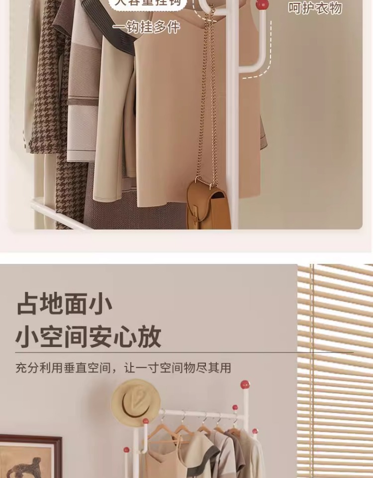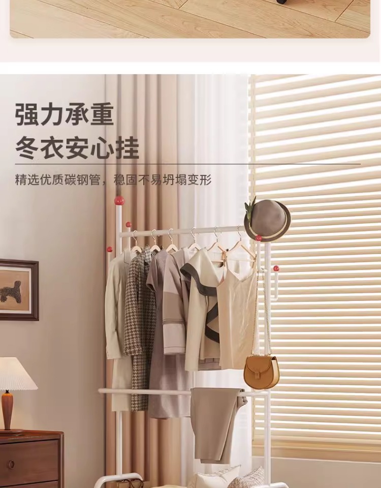 晾衣架卧室落地加粗加厚挂衣架晒衣服的架子2026新款落地挂包衣架