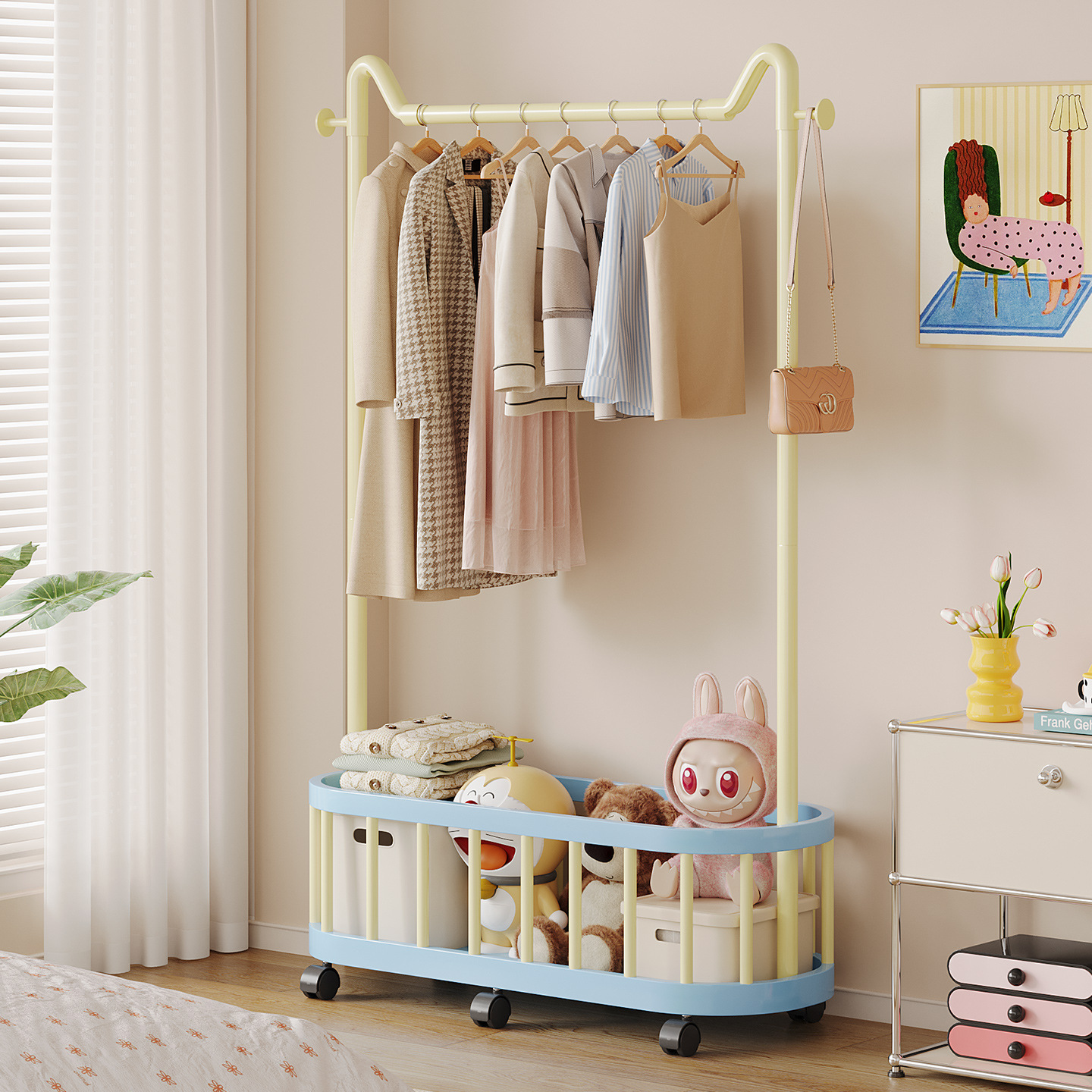 多巴胺挂衣架落地卧室衣帽架宿舍小型家用房间衣服收纳晾衣架移动