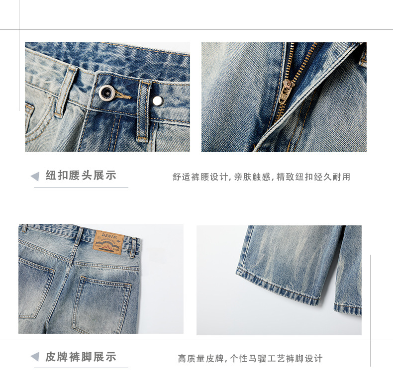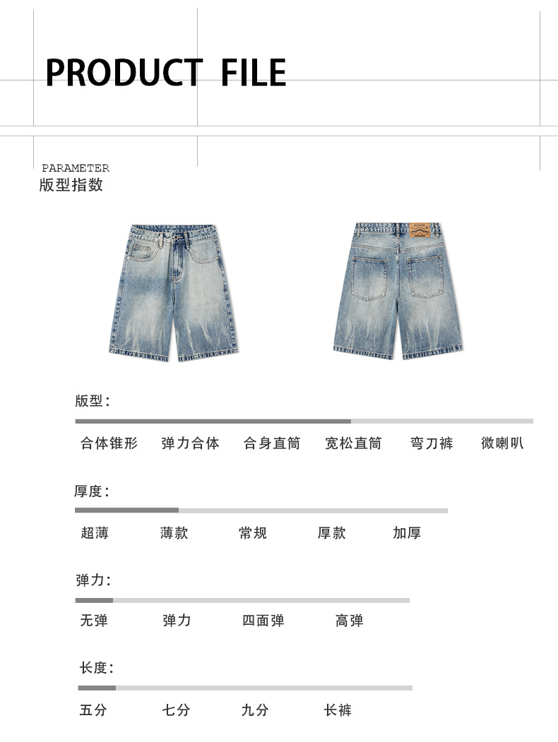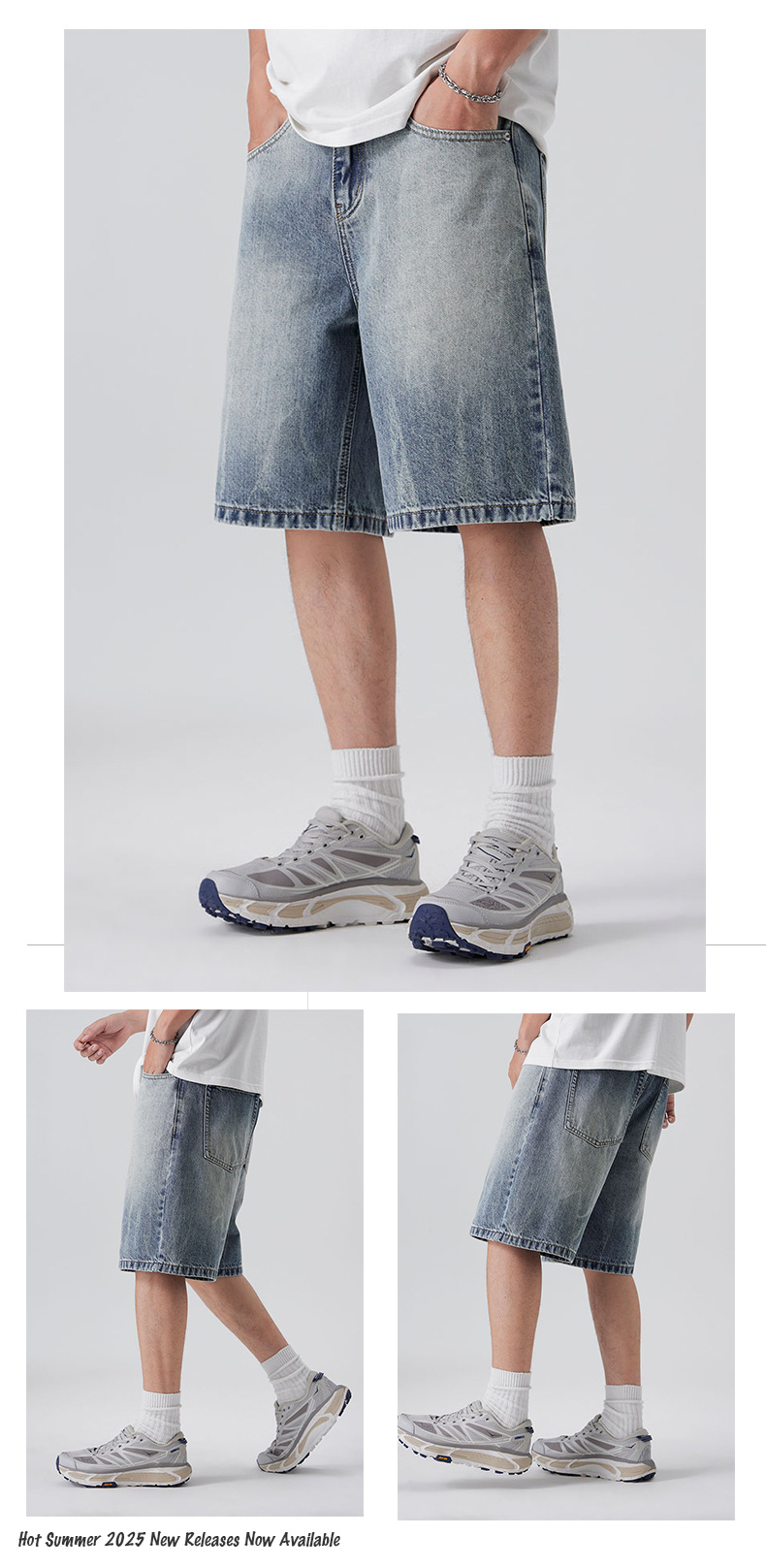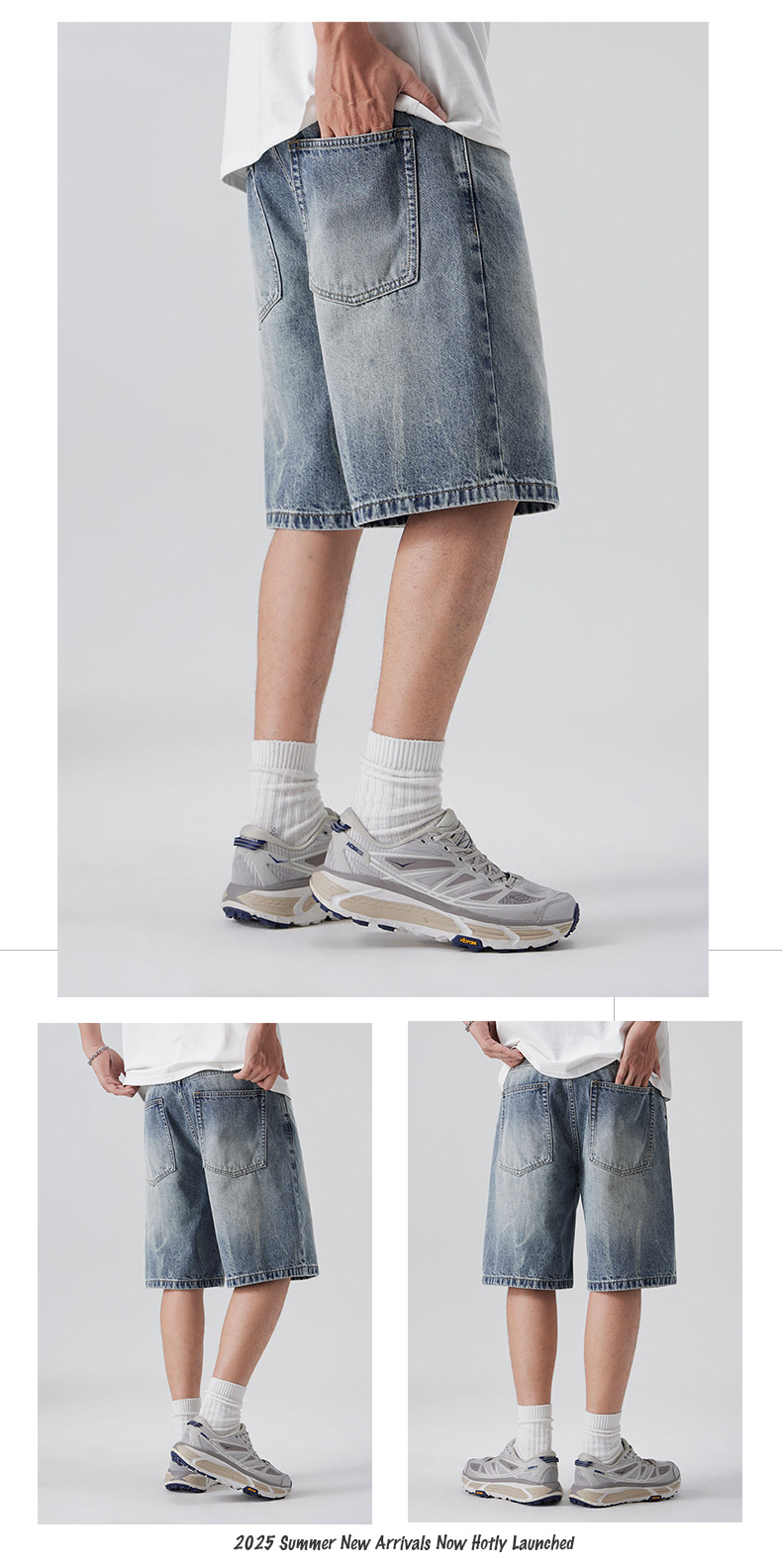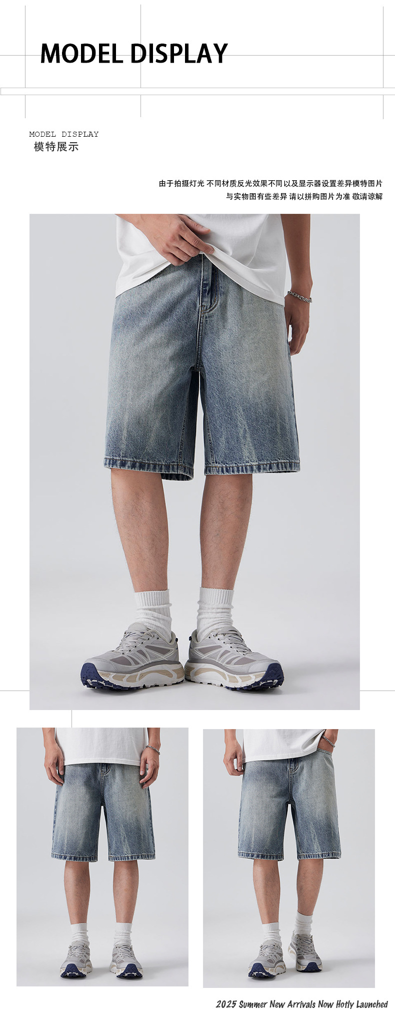 2025年新作サマーデニムショートパンツ、クラシックブルーヘビーナチュラルスタイル、水性タイダイジーンズ