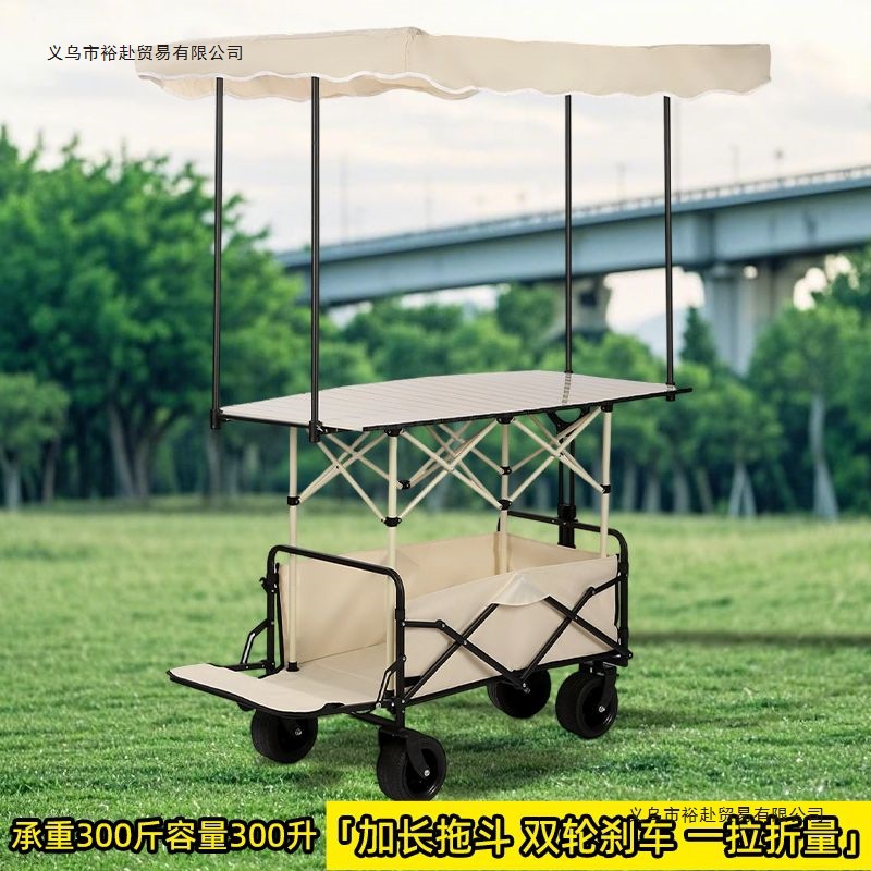 加厚加长便携式拖斗露营车摆摊车可折叠万能小推车带遮阳棚野营车