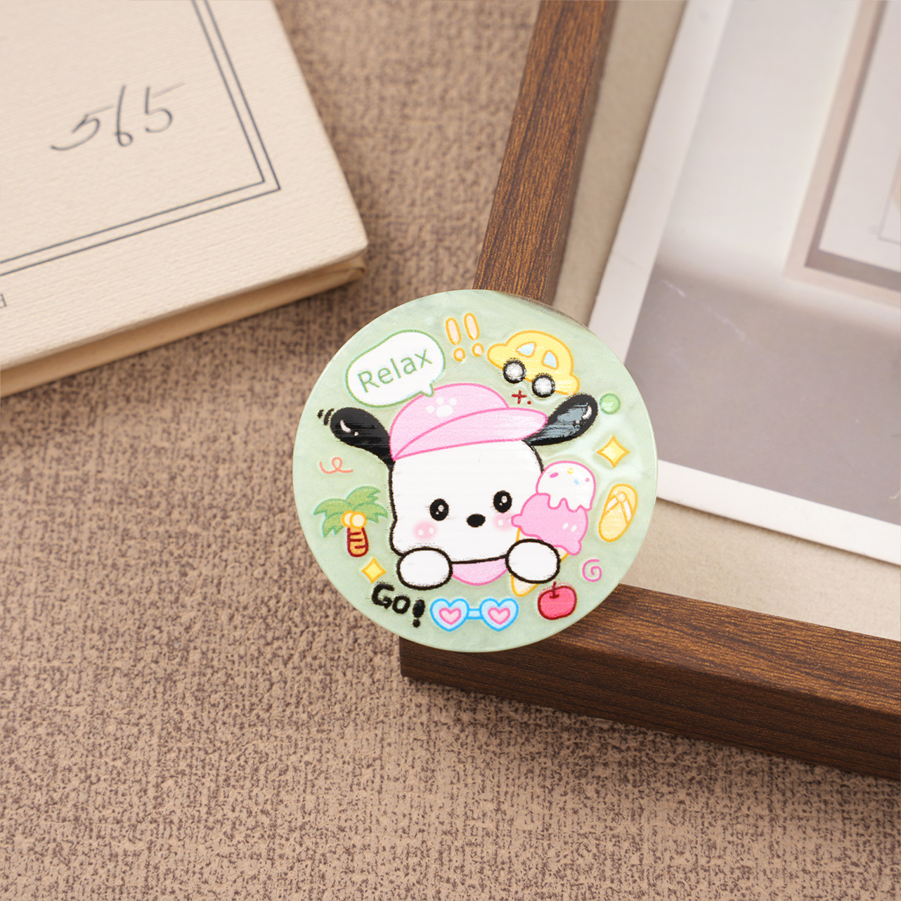 かわいいパチャ犬ブローチ,ラウンドシナモンドッグブローチ,クロミブローチ,キティ猫のブローチ,プリン犬ブローチ,メロディブローチ