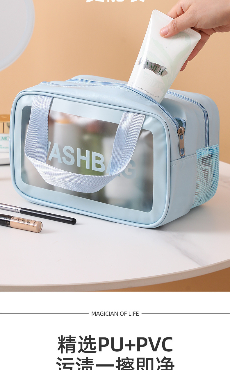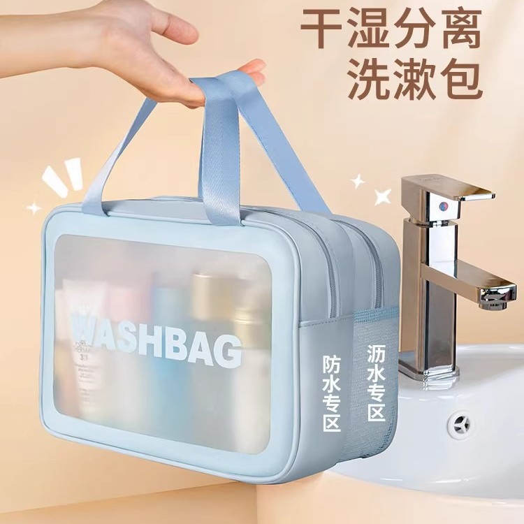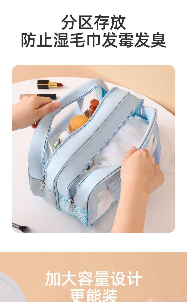 新型乾湿分離洗面バッグ二重化粧バッグ防水折り畳み透明携帯化粧品収納バッグ