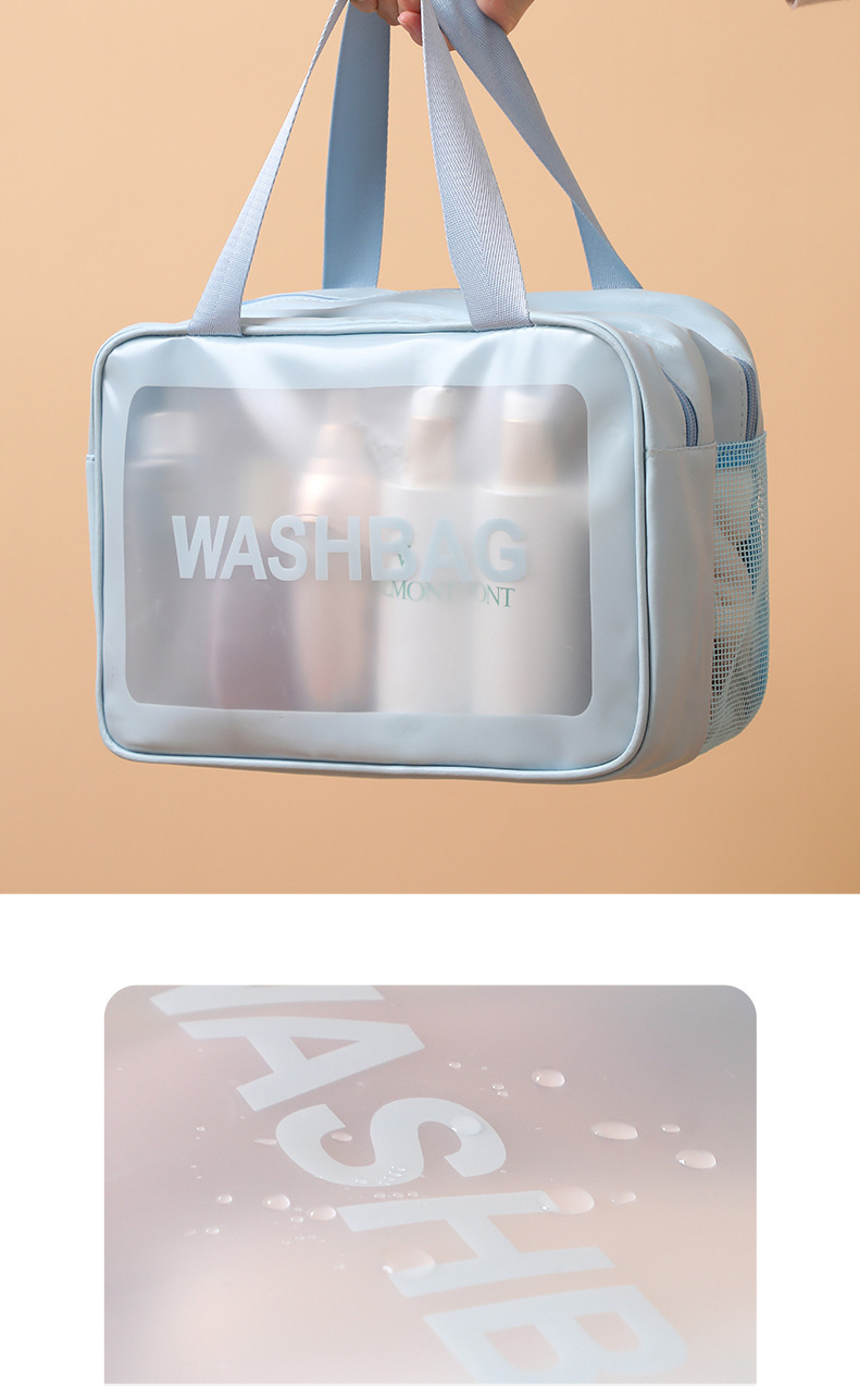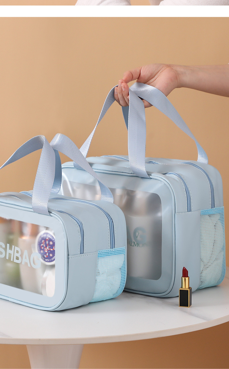 ポータブル大容量化粧バッグ防水手提げ水泳収納バッグ透明puフロスト乾湿分離洗面バッグ