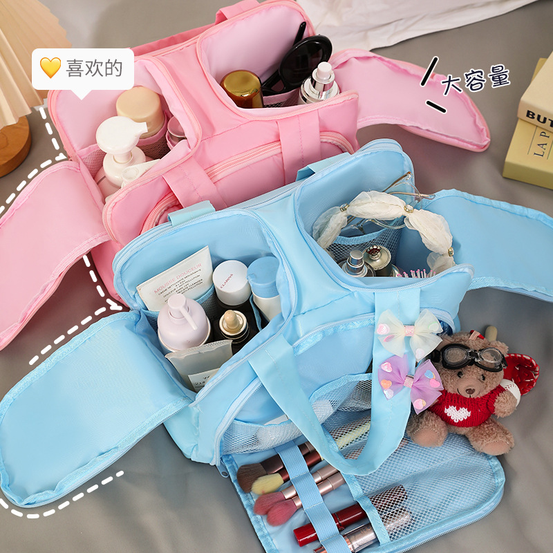 ファッションシンプルな化粧品バッグ女性のポータブル軽量大容量パーティションダブルオープン収納袋旅行トイレタリーバッグ