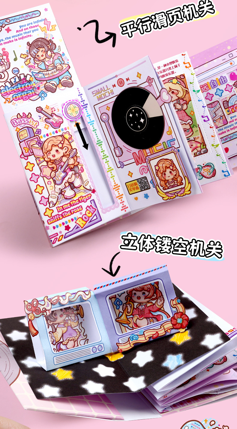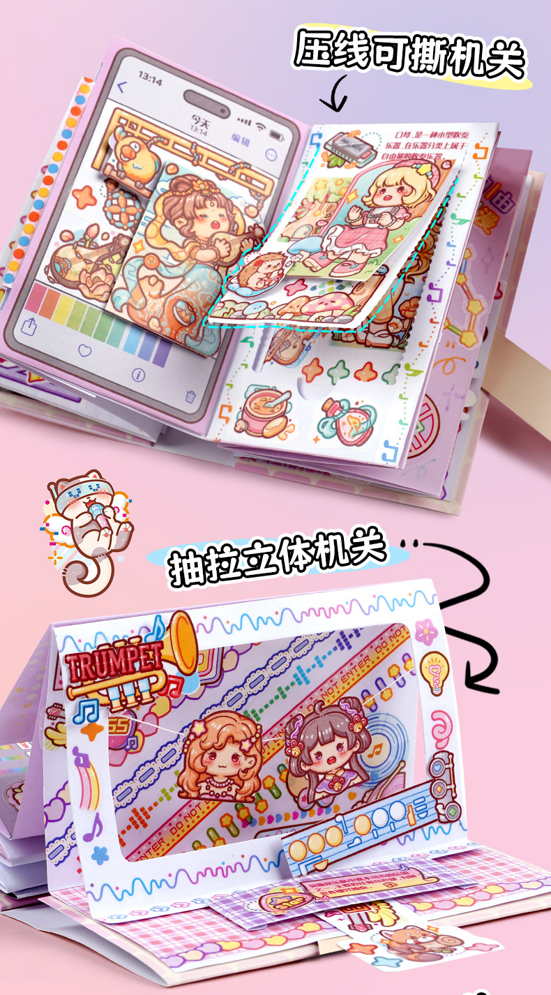小さなもち機械素材ステッカーブッククリエイティブプル立体機械ステッカー減圧手作りノーカット静かな本
