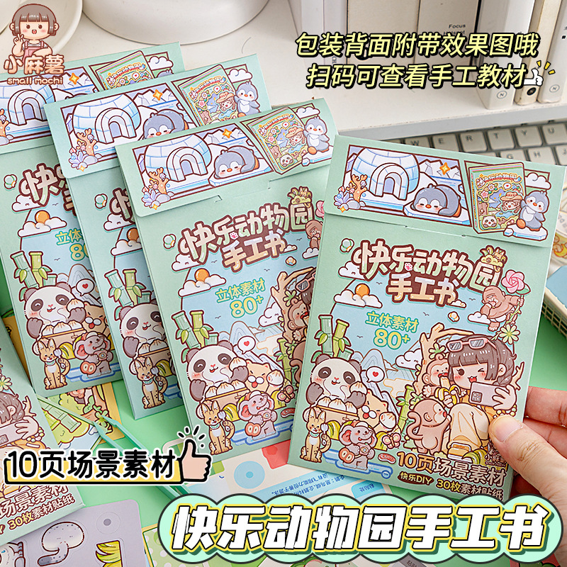 小麻薯快乐动物园贴纸DIY安静书儿童益智手工场景装饰小图案拼贴
