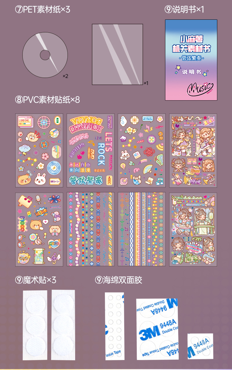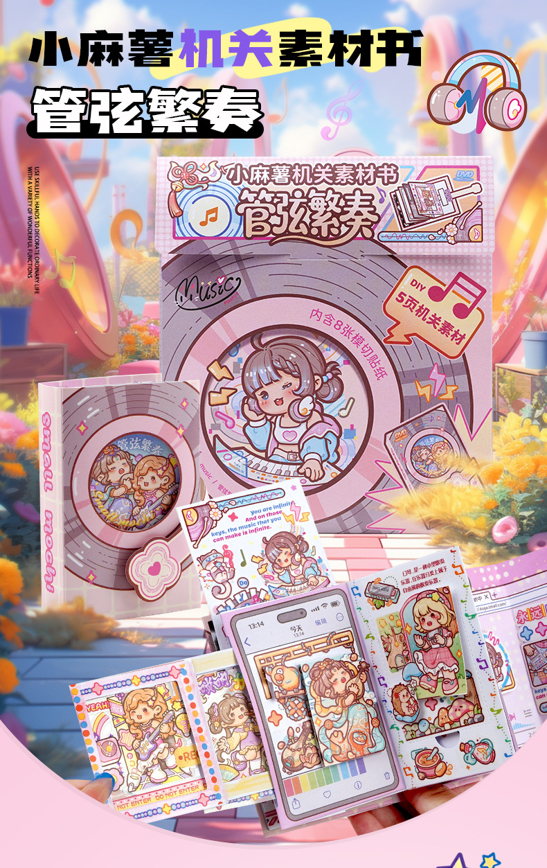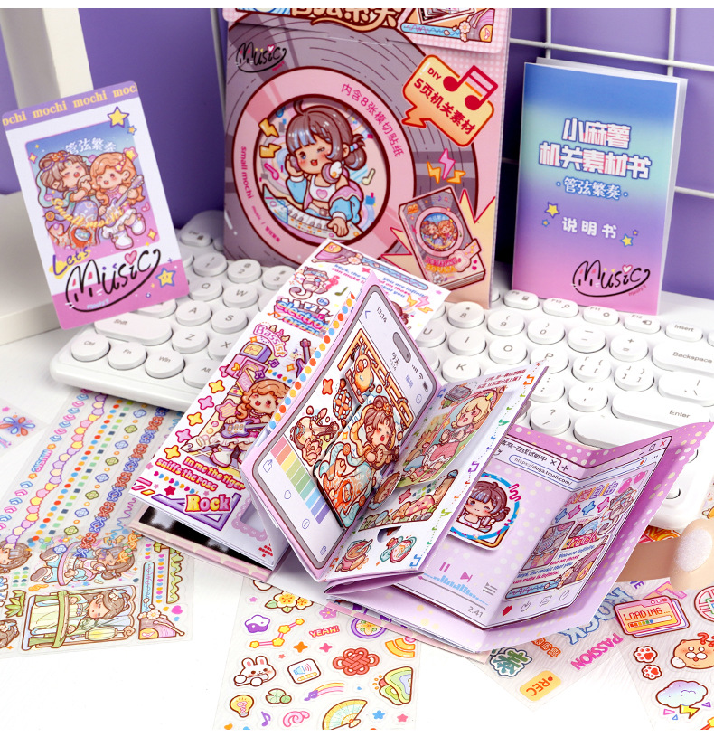 小さなもちもちオーケストラメカニカル素材ブック子供用減圧静かなブックダイカットハンドブックステッカーカラーキャラクターブック