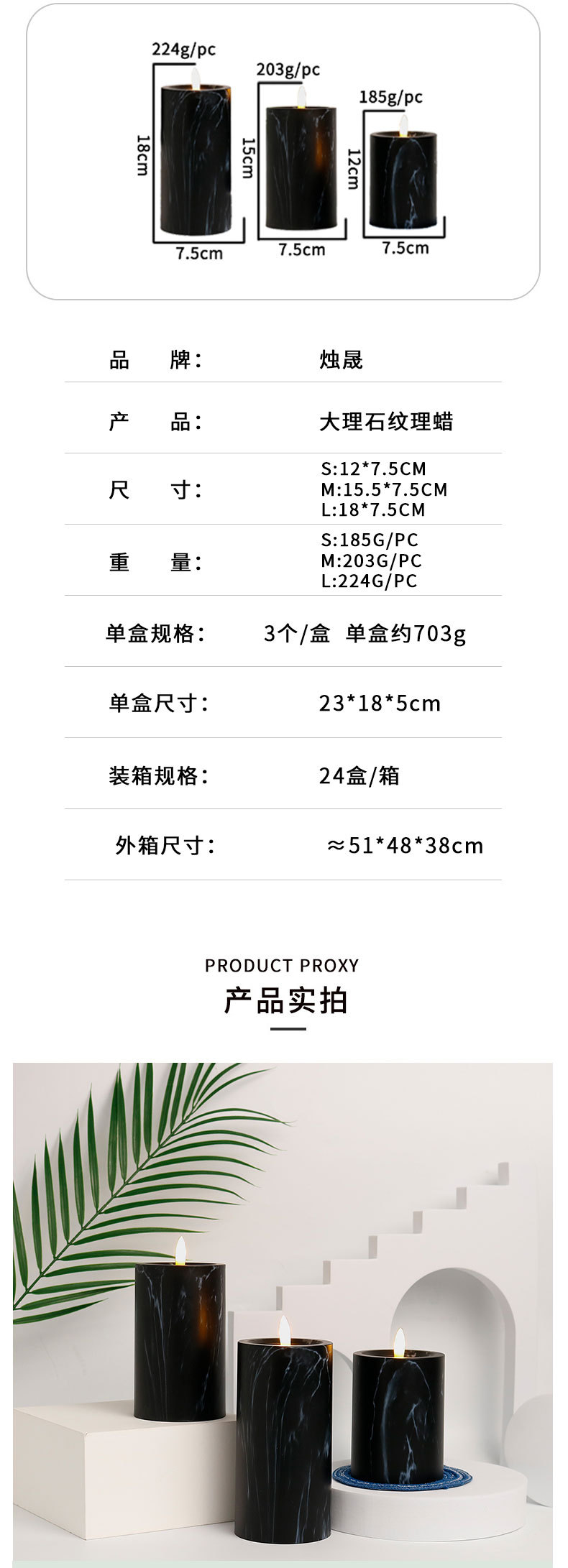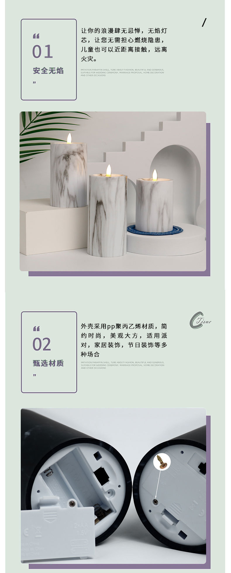 ヨーロッパの大理石模様の電子キャンドルライト LED キャンドルホルダー オイルドリップ フラット口装飾ライト ライト プロポーズ 結婚式の告白