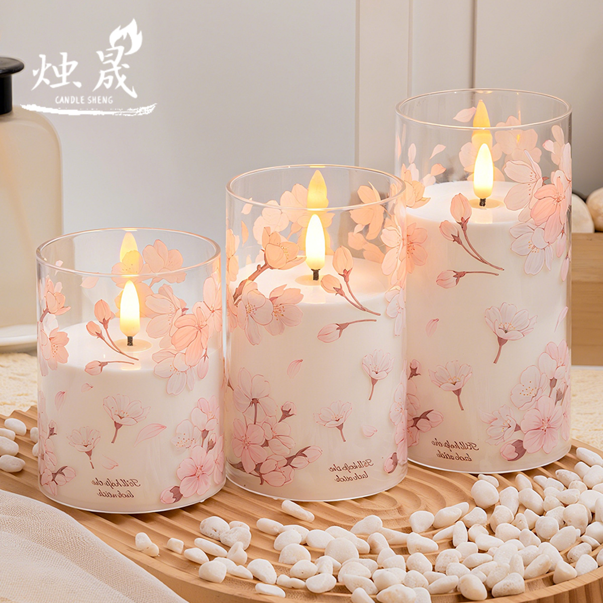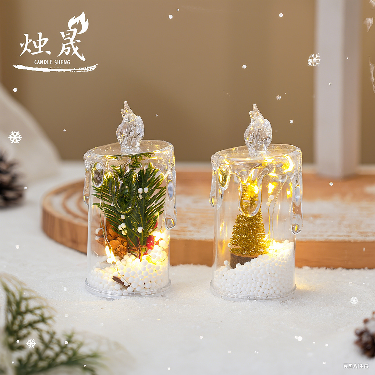 永生花led仿真电子蜡烛透明小夜灯情人节创意流泪氛围感蜡烛摆件