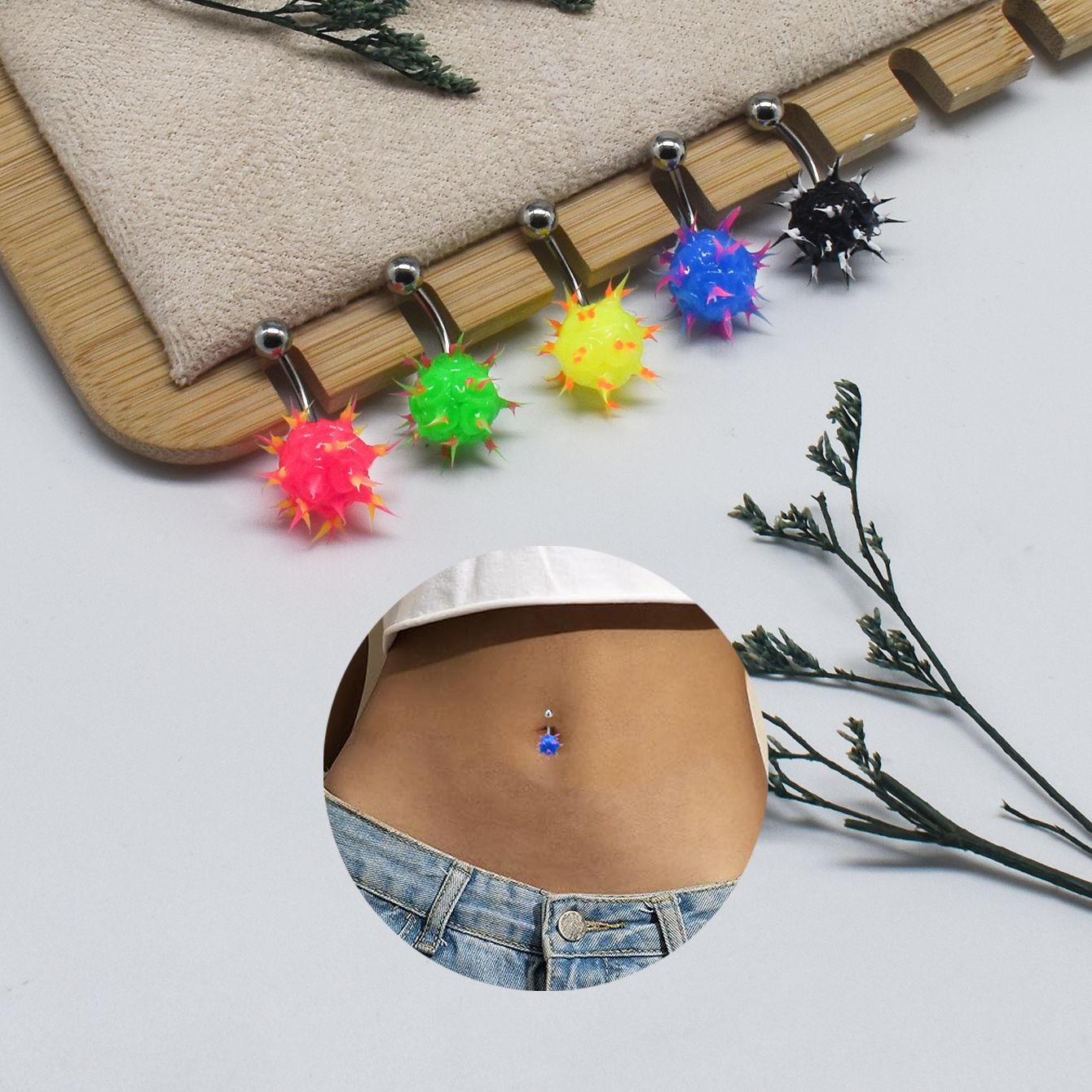 跨境电商欧美爆款硅胶毛球脐环螺旋杆为不锈钢材质