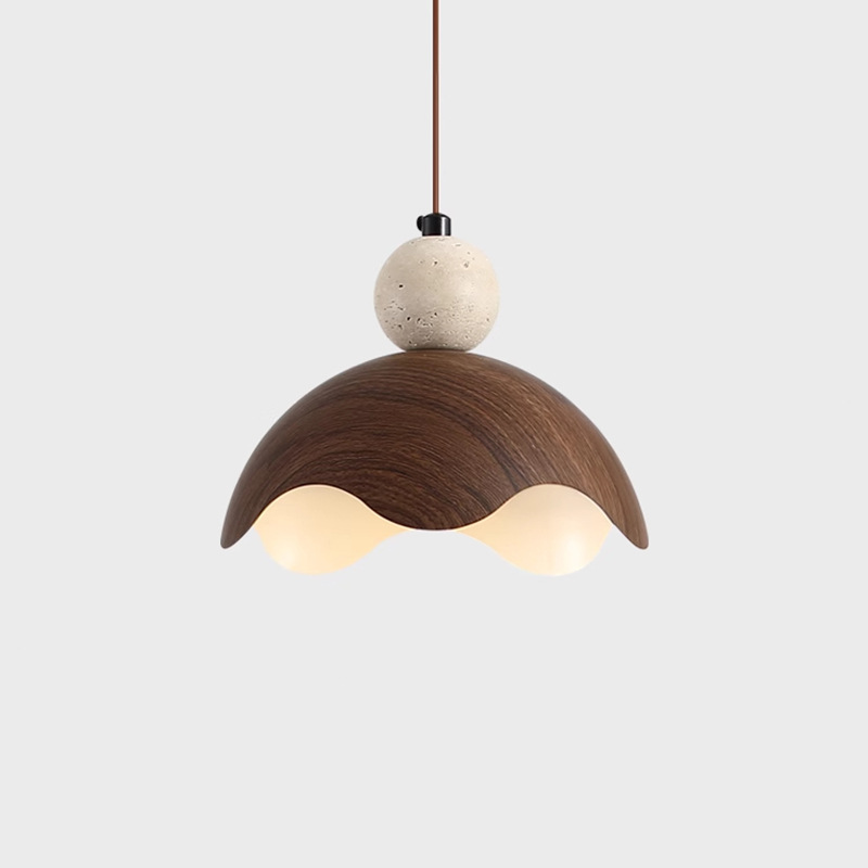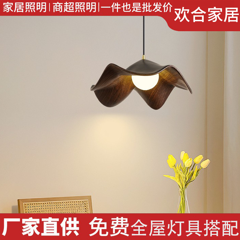 北欧创意原木纹色荷叶餐厅灯吊灯花朵民宿吧台灯日式侘寂风吊线灯