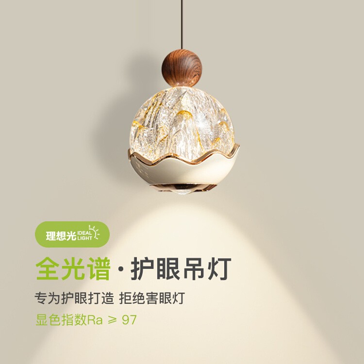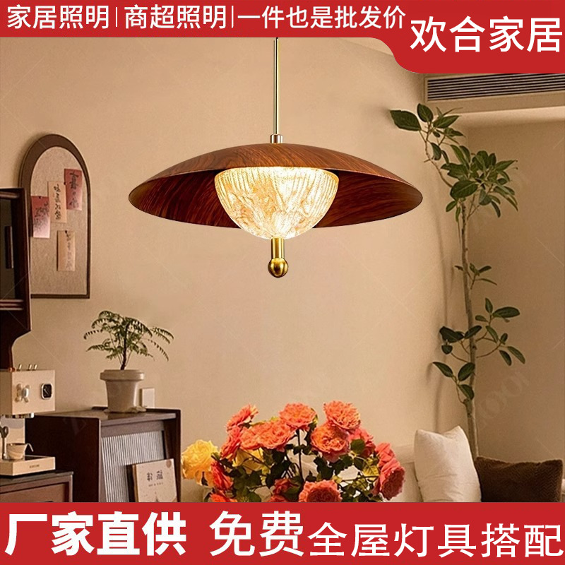 卧室床头吊灯中式复古诧寂风黄洞石入户玄关小吊线灯胡桃木色