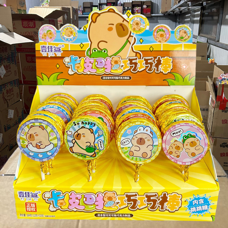インターネット有名人のかわいい漫画の見栄えの良いダークチョコレートロリポップご褒美子供用スナックギフト賞品全箱卸売