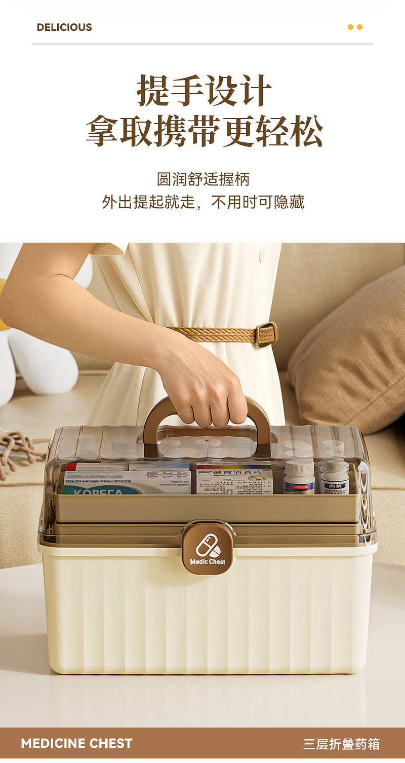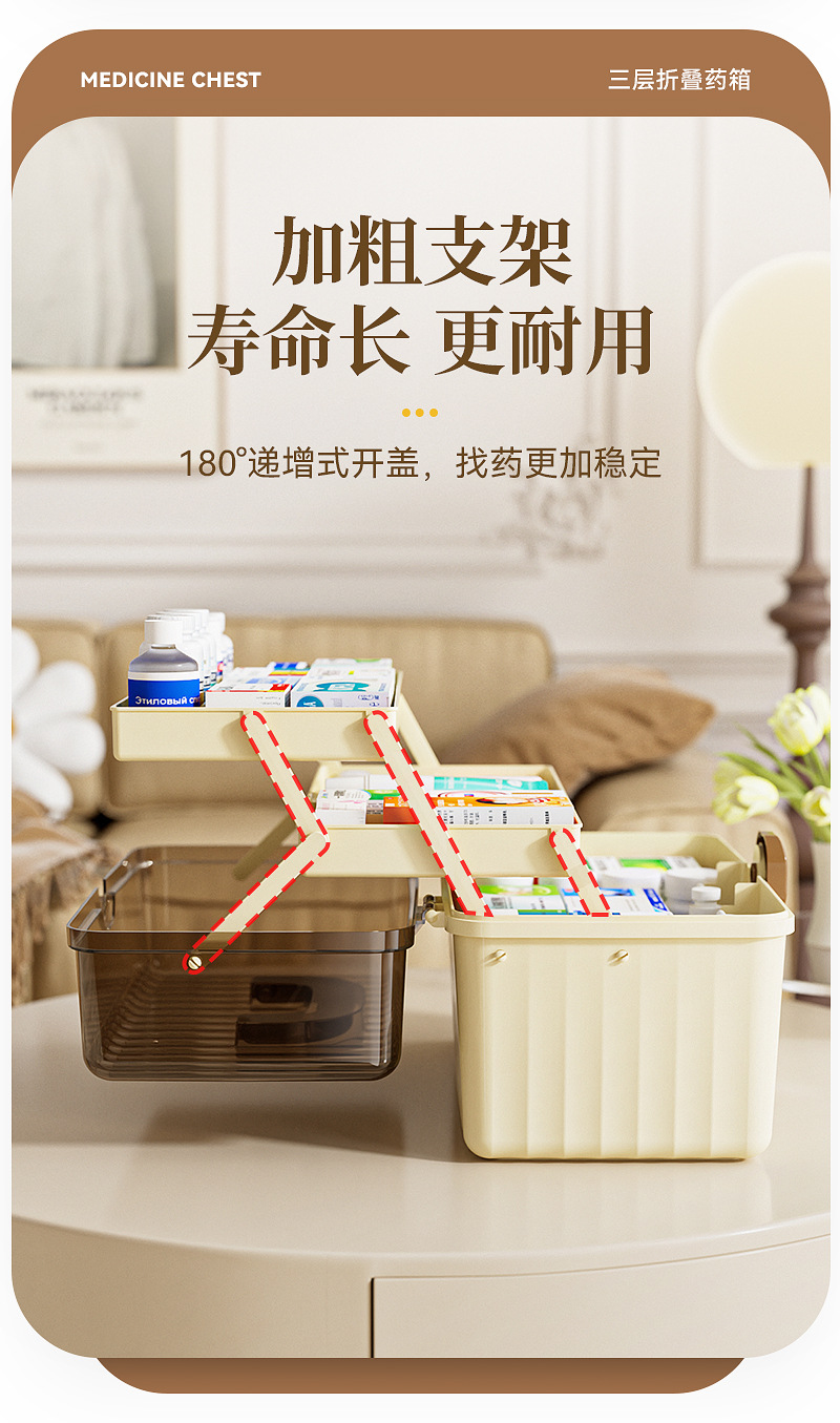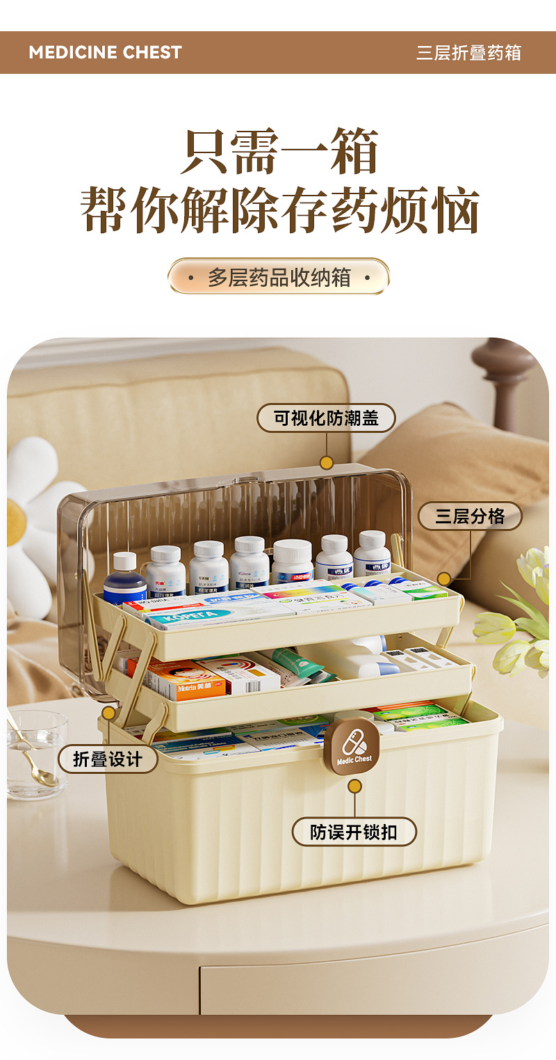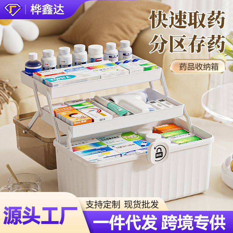 三層折り畳み医薬箱大型家庭用薬品医薬箱医療救急分類薬箱携帯救急箱