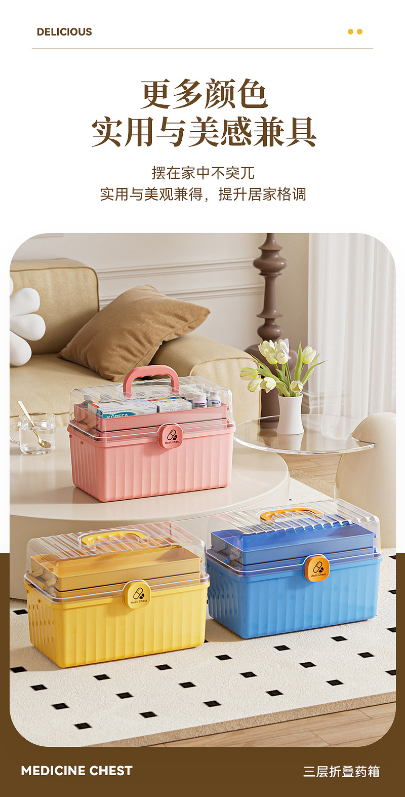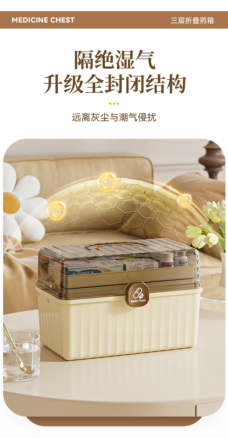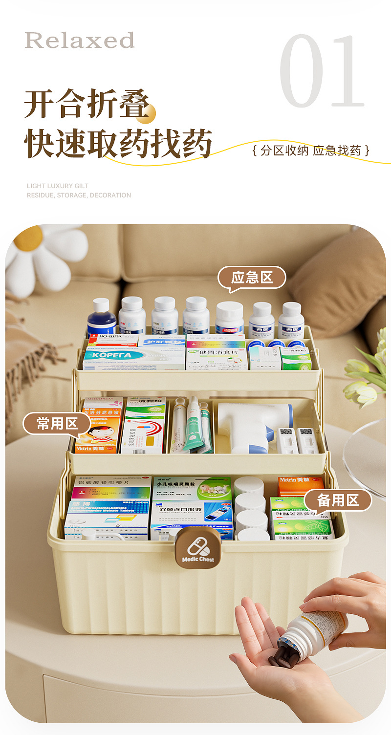 三層折り畳み医薬箱大型家庭用薬品医薬箱医療救急分類薬箱携帯救急箱