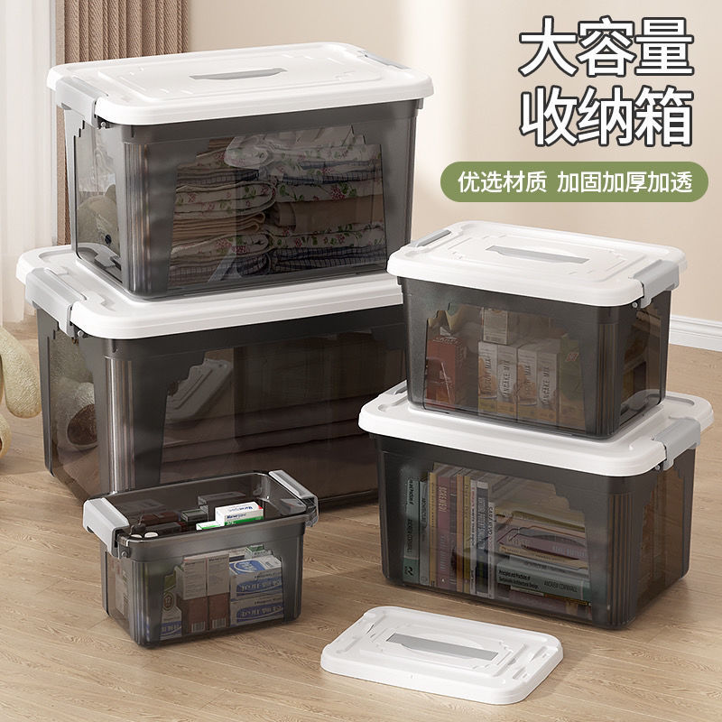 透明な収納ボックスデスクトップオーガナイザープラスチック収納ボックス家庭用衣類おもちゃ透明黒超大容量収納ボックス