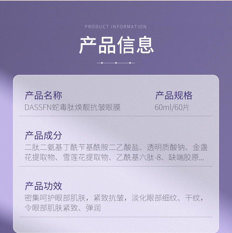 製品仕様 DASSFN ヘビ毒ペプチド若返りアンチリンクル アイマスク (箱入り),ジェリアンナ海藻水光アイマスク+紅参保湿アイマスク(箱入り)