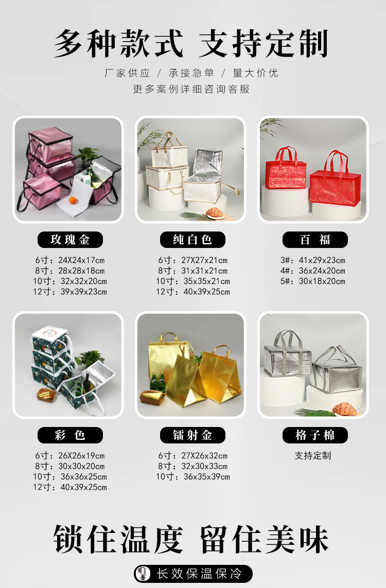 ローズゴールドのサーマルバッグ,純白の保温バッグ,百福保温バッグ,カラフルな保温バッグ,レーザーゴールド保温バッグ