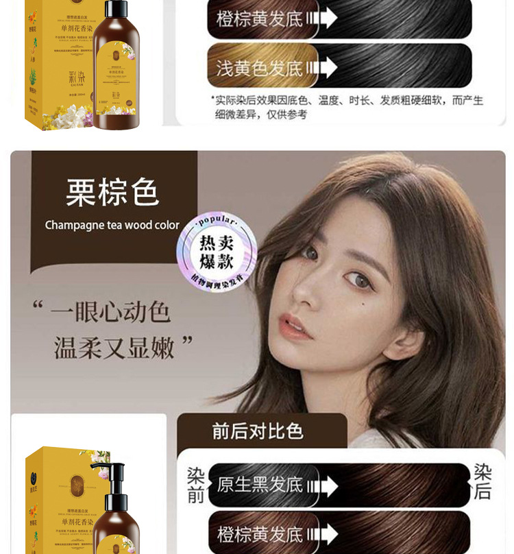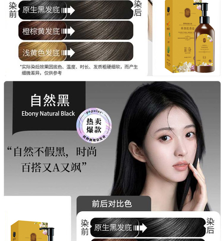 植物性花香染毛剤、頭皮に付かない健康的な染毛剤、白髪をカバー、抖音で話題の商品、一件代発送