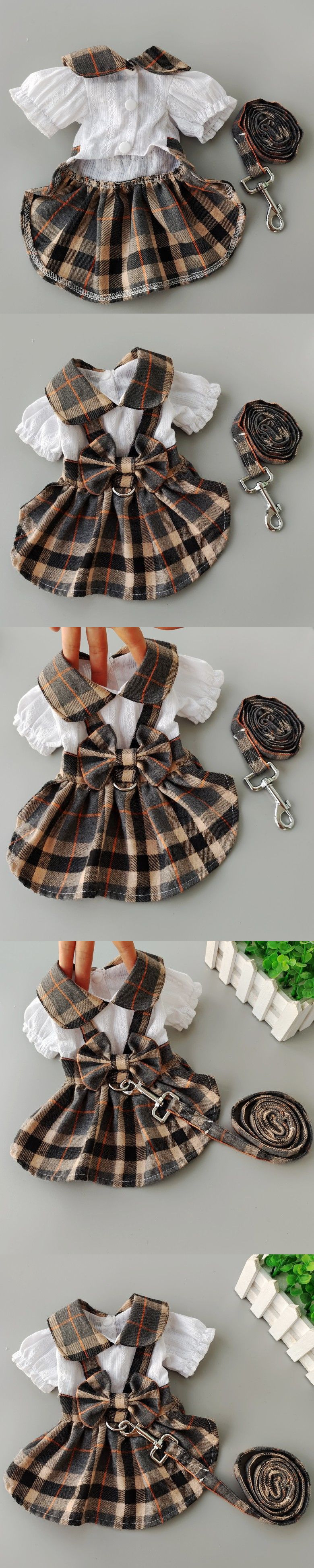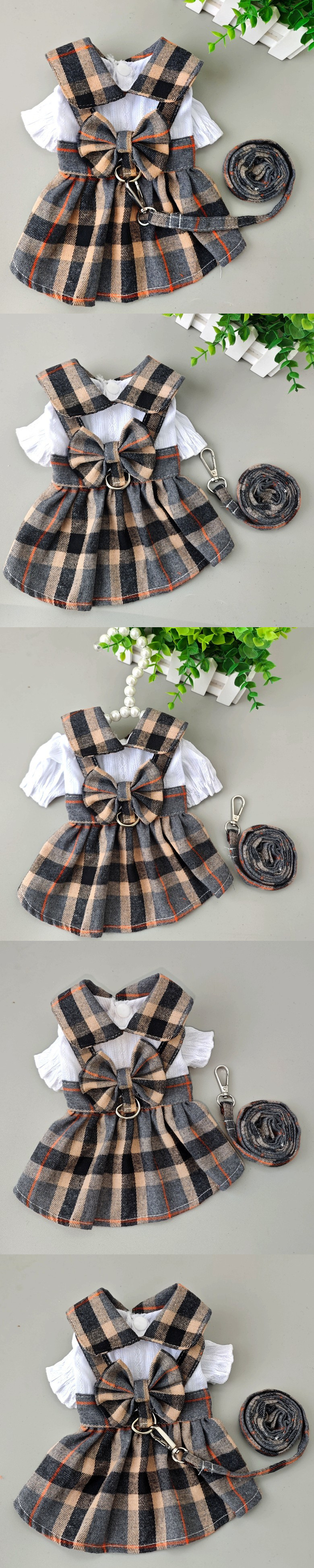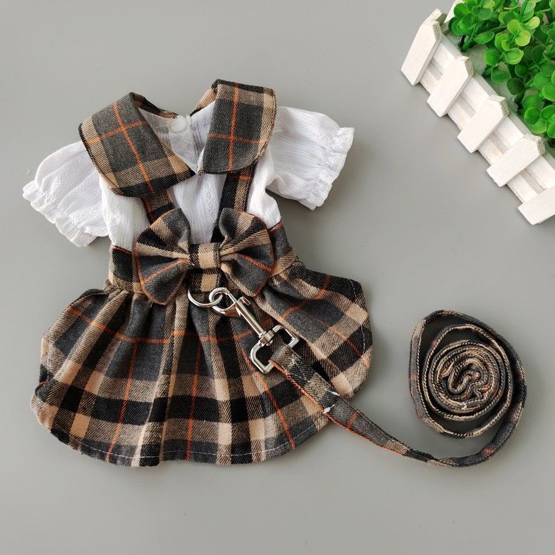 牽引ロープ付きお出かけ犬服スカートテディビションポメラニアンプードルペット小型犬猫服秋