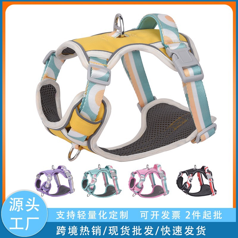 跨境宠物胸背带背心式透气反光条防水牛津布可调节牵引绳胸背套装