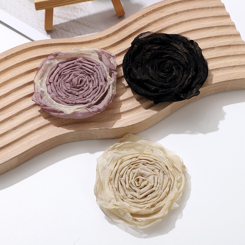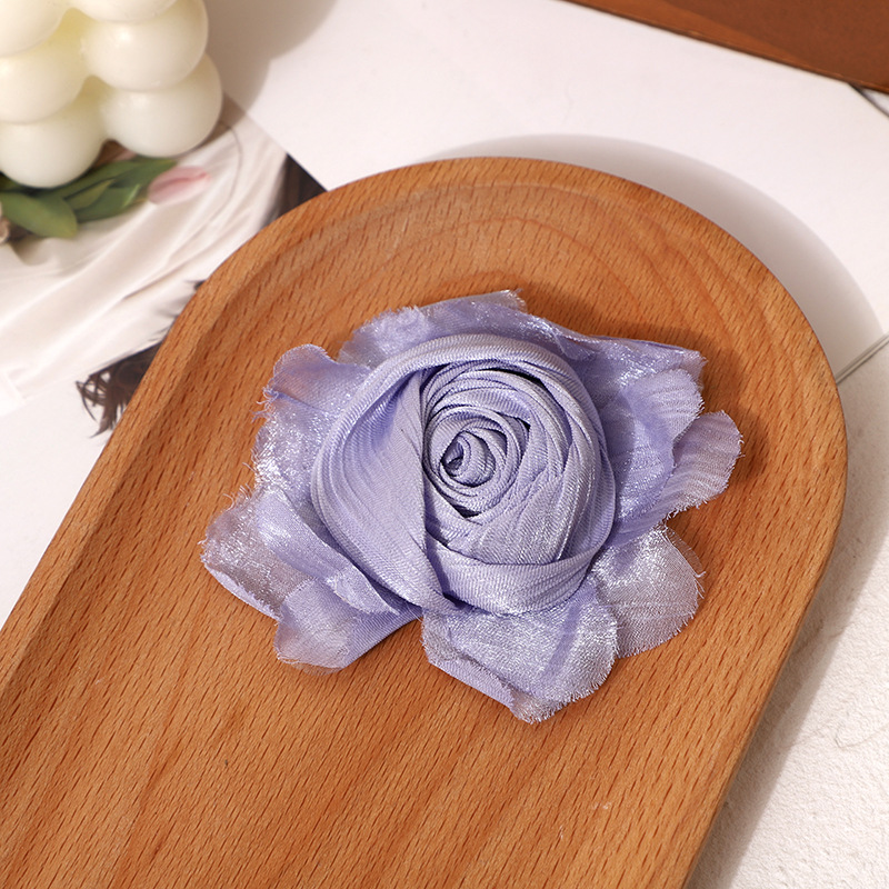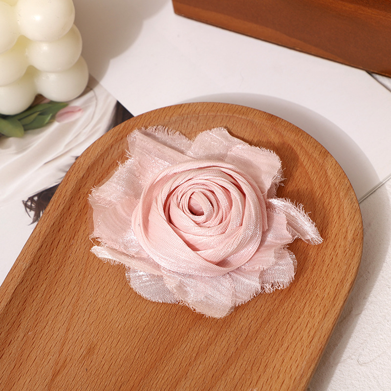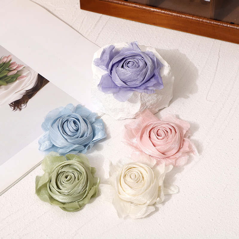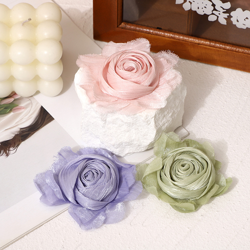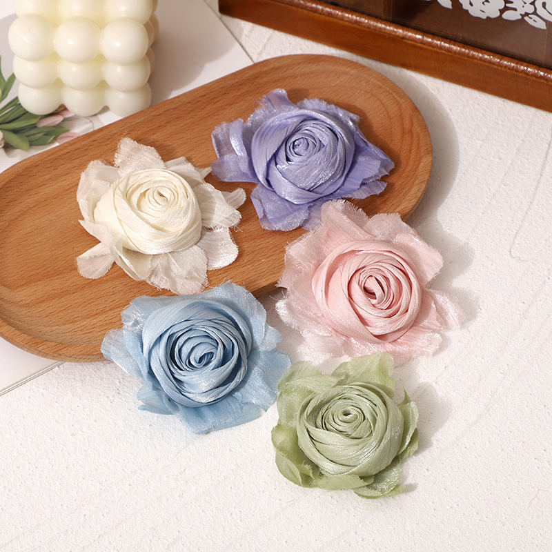 優しく純粋な光沢のあるシルクメッシュレースローズDIYクリップヘアロープ女性用ヘッドバンドコサージュフラワーアクセサリー