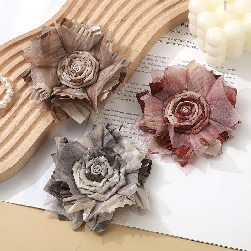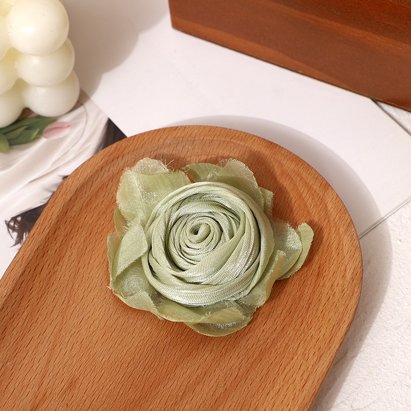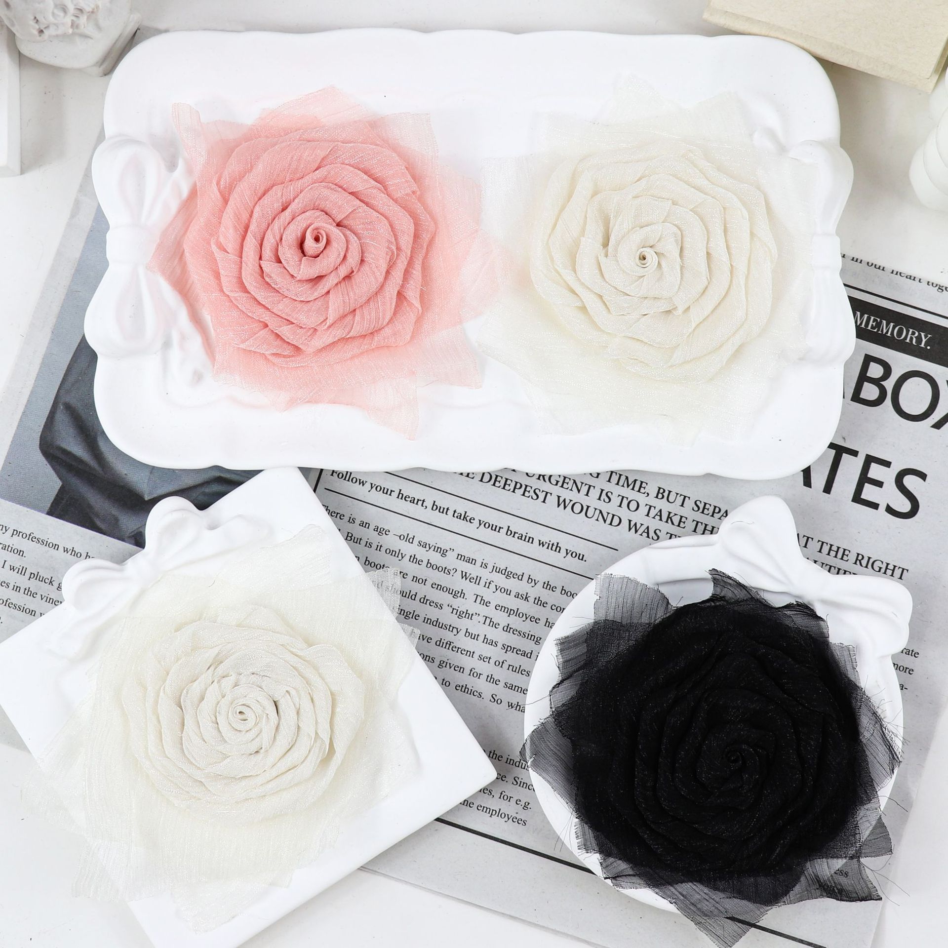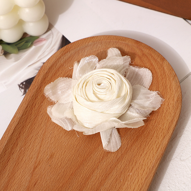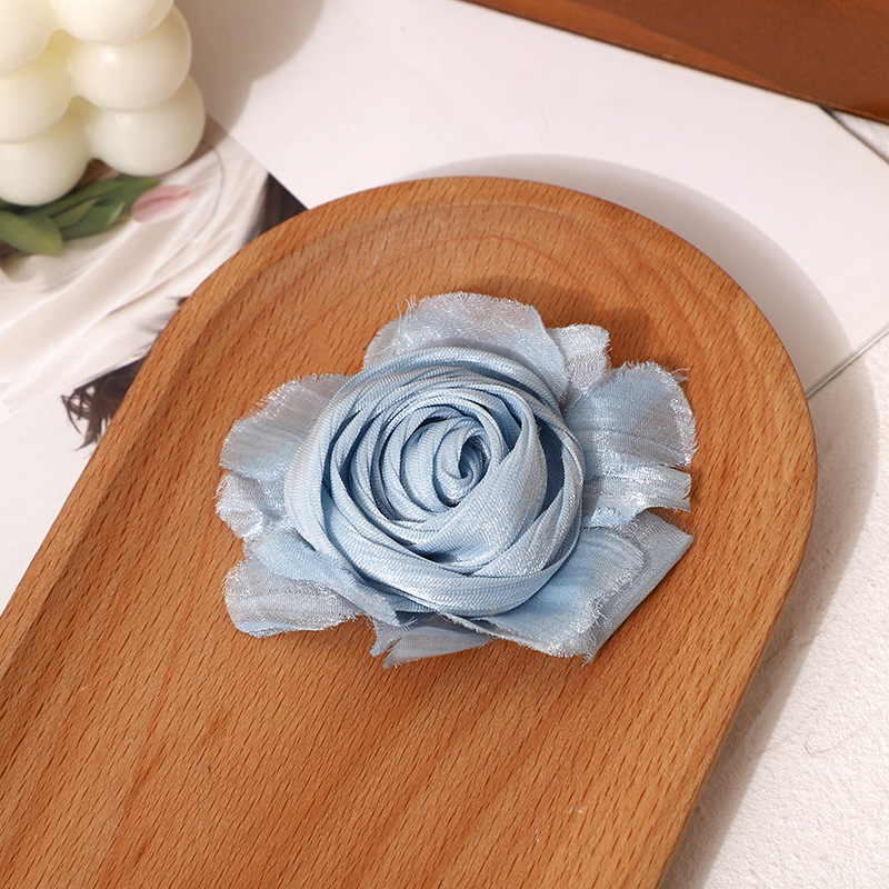 優しく純粋な光沢のあるシルクメッシュレースローズDIYクリップヘアロープ女性用ヘッドバンドコサージュフラワーアクセサリー