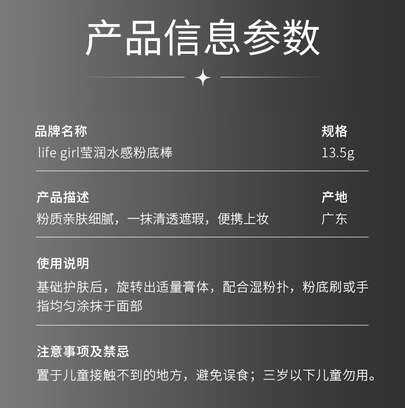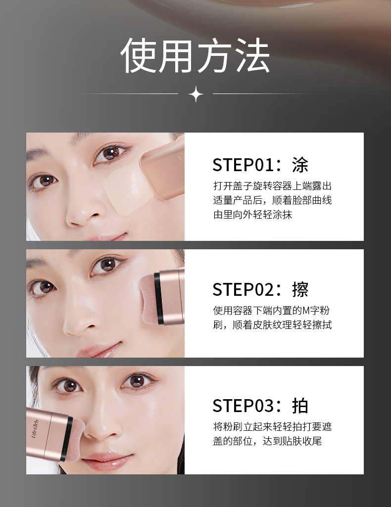 Life Girls莹润水感粉底棒双头带刷头服帖自然韩系水光肌跨境美妆
