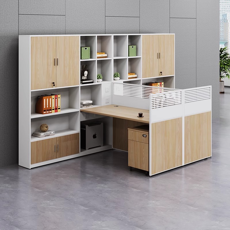 財務事務机と椅子の高棚二人の組み合わせ事務机人事屏風事務カードの四人の従業員テーブル