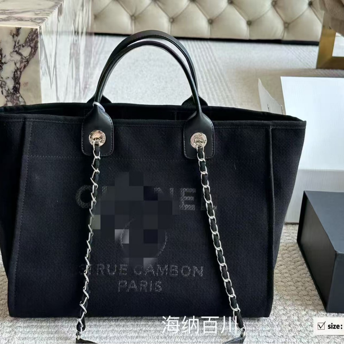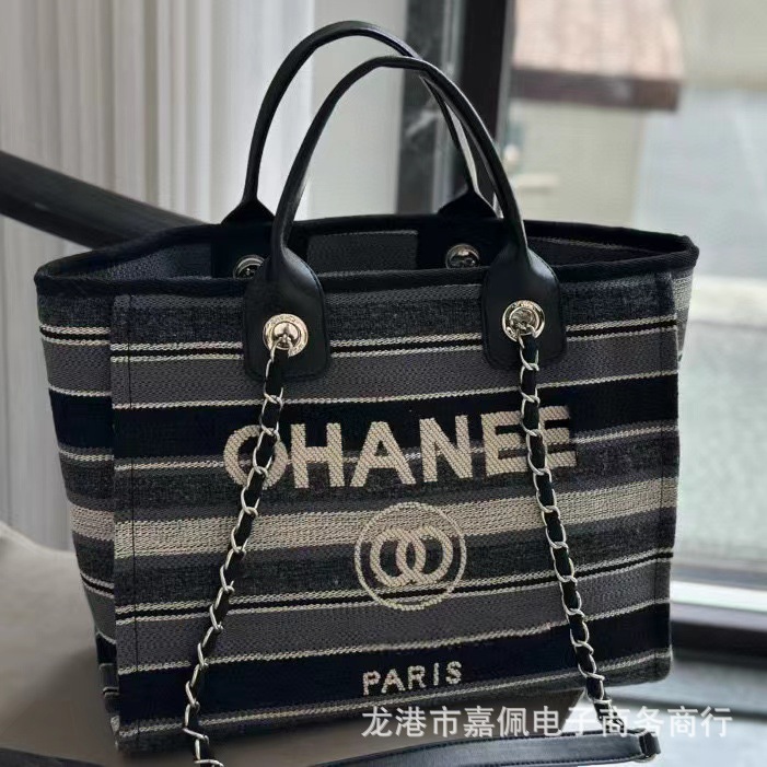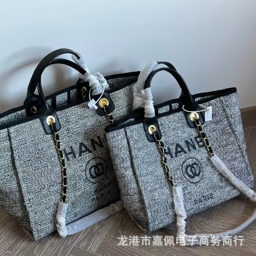 跨境高版本高级黑色24c手提帆布沙滩包链条大容量子母包女包