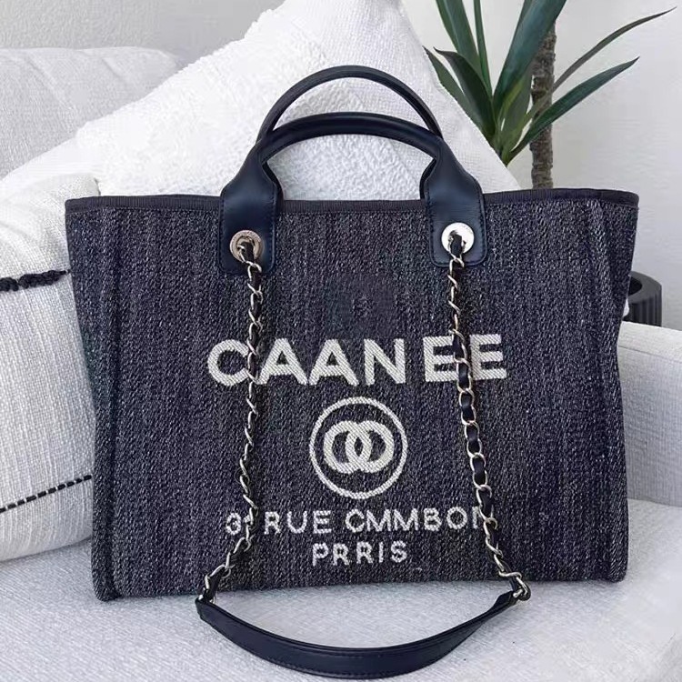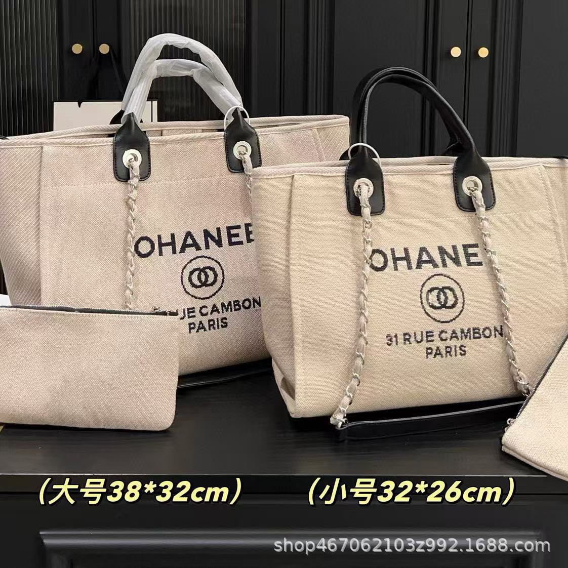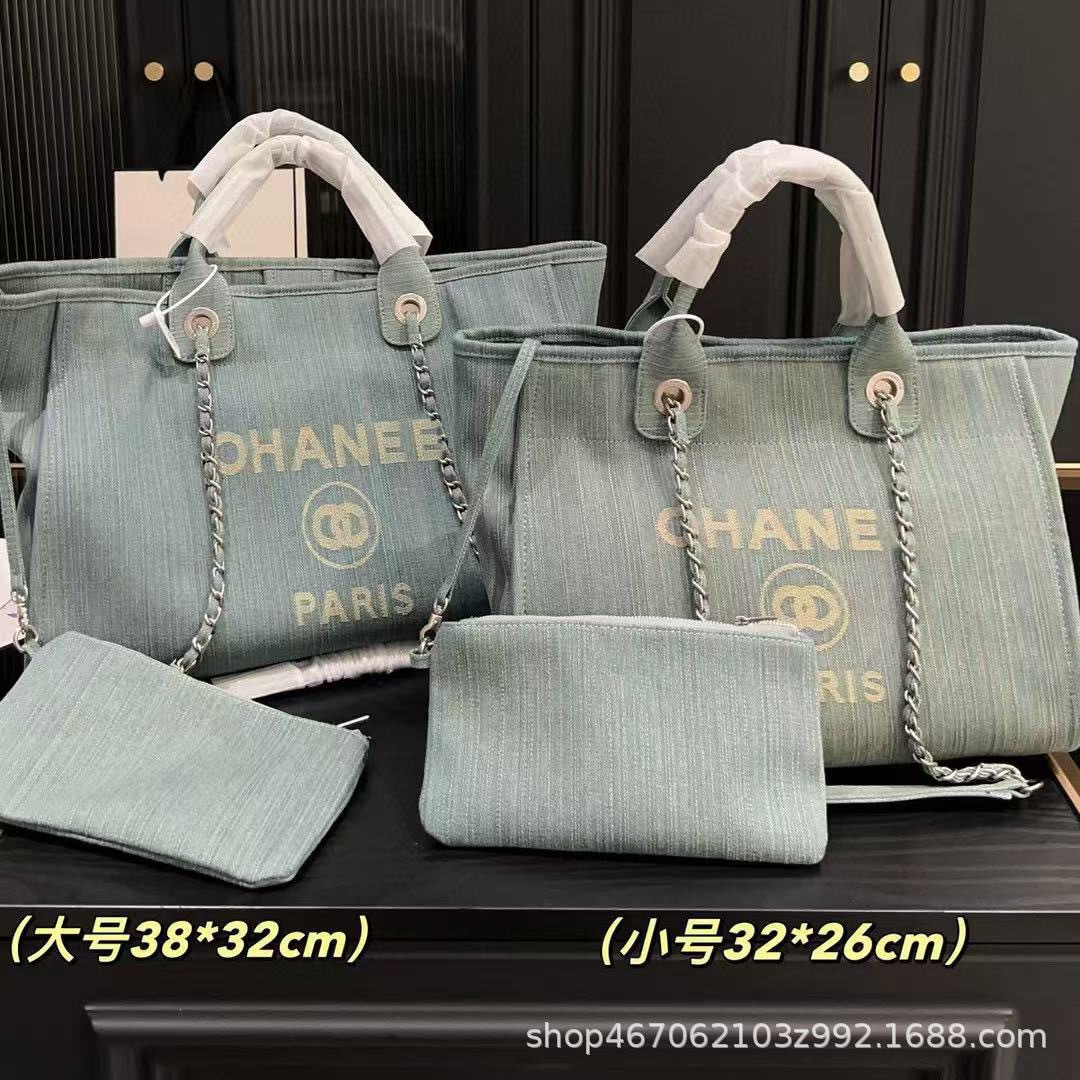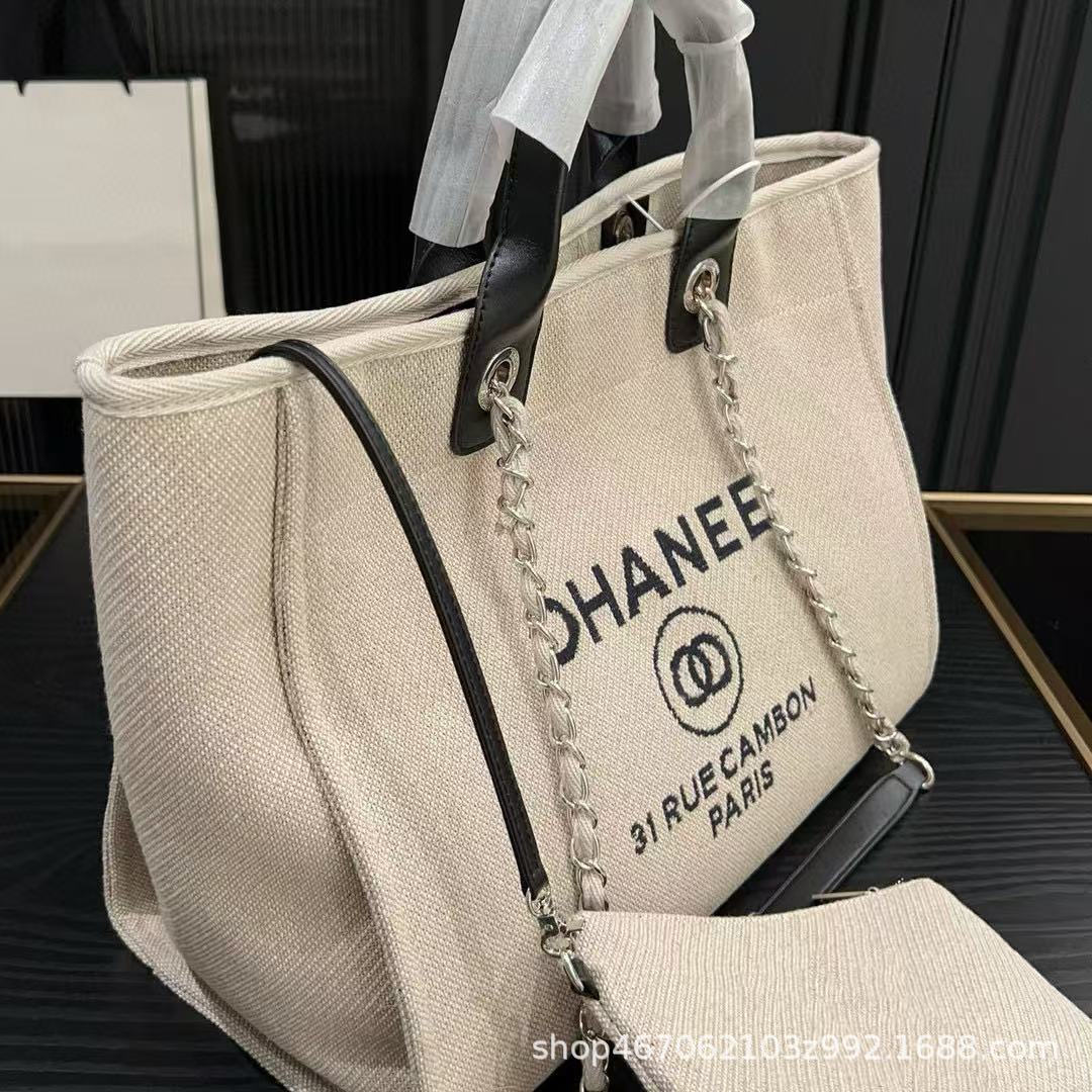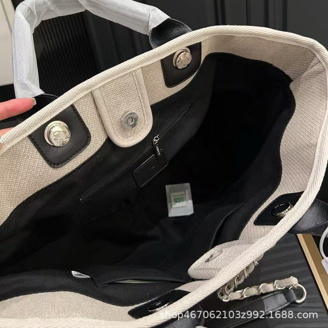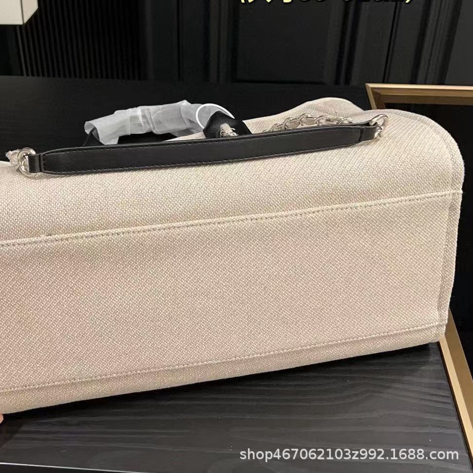 25新款高版本小香风帆布沙滩托特包手提单肩大容量通勤链条购物袋